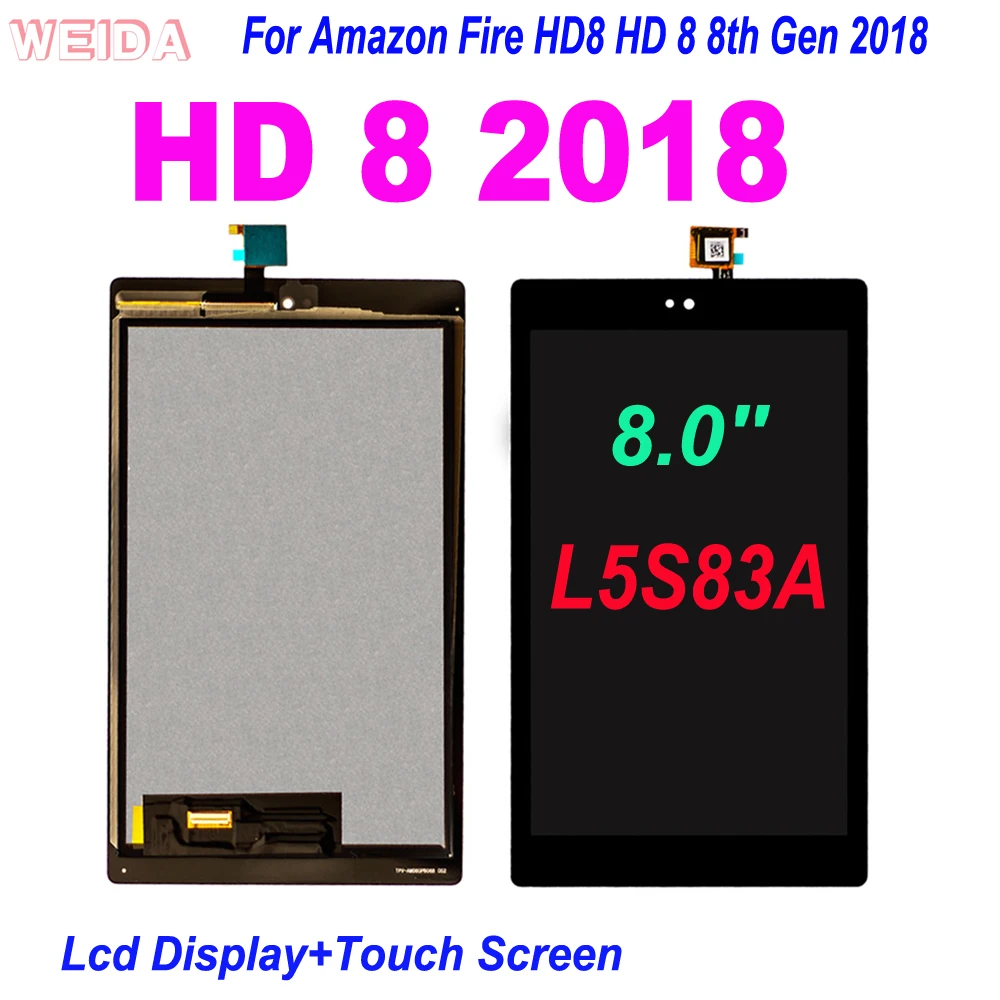 8,0 ''для Amazon Fire HD8 HD 8 8th Gen 2018 L5S83A ЖК-дисплей Дисплей кодирующий преобразователь сенсорного экрана в сборе для Amazon Kindle FireKindle Fire HD 8 2018 ЖК-дисплей