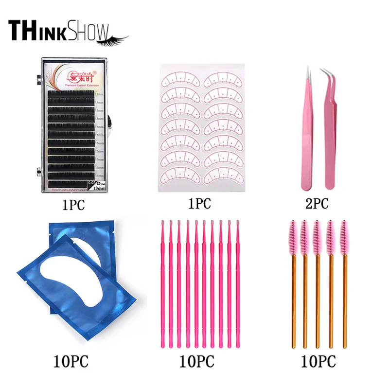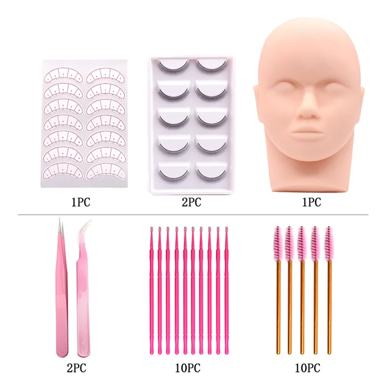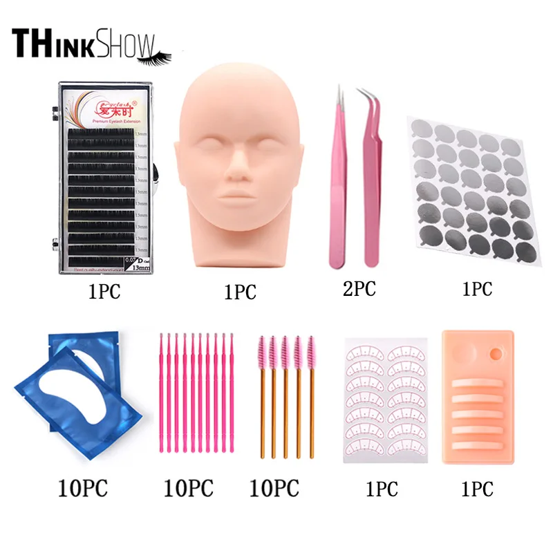 Набор для наращивания ресниц THINKSHOW, набор для модель головы для практики, пинцетов, клеевых колец, кисточки, инструменты для наращивания ресниц
