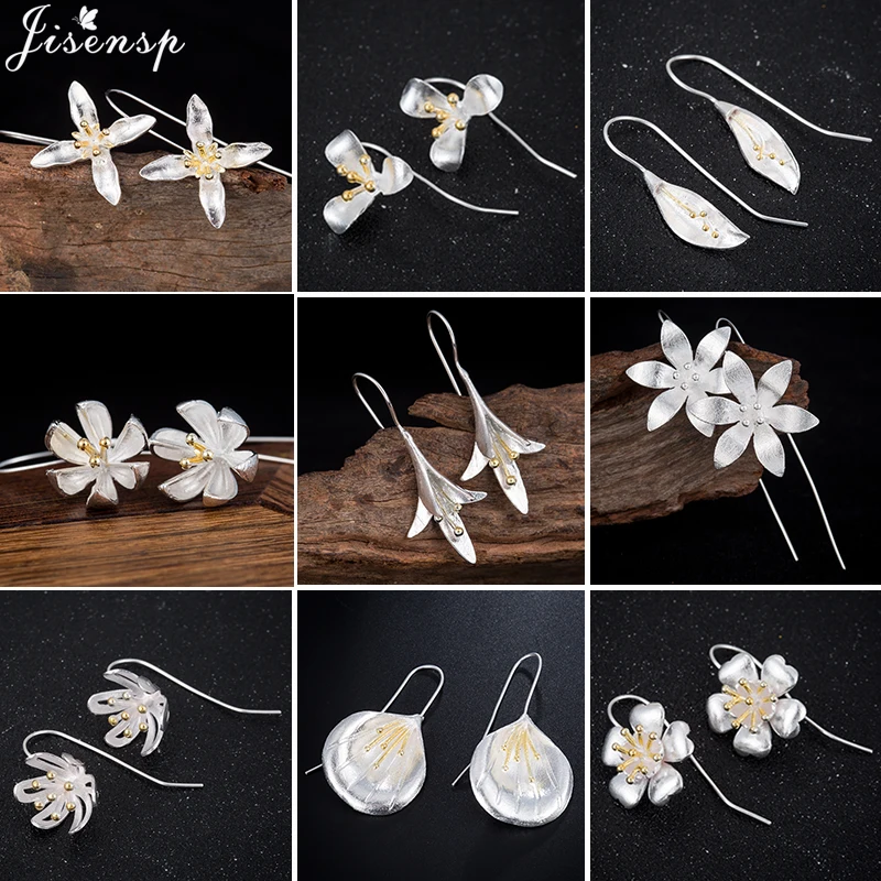 Серьги-гвоздики женские Jisensp, серебристые, с цветком, массивные ...