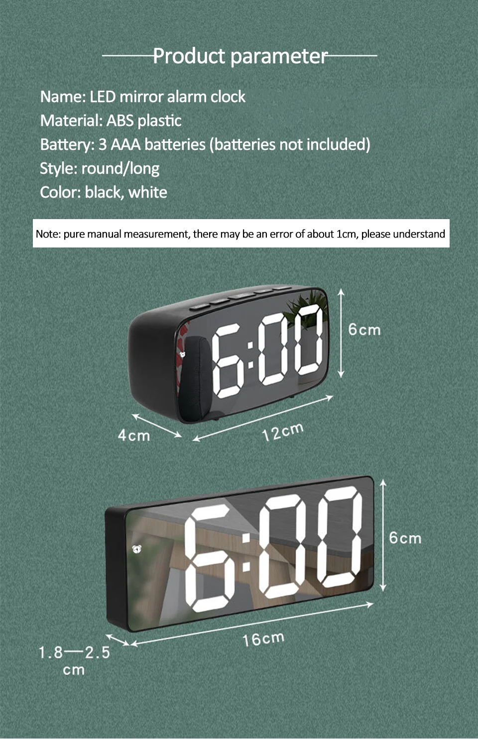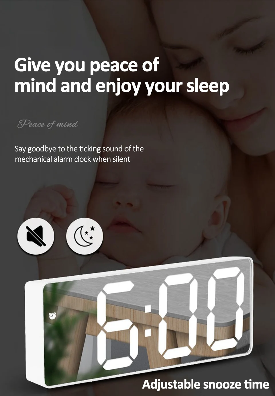 Цифровой будильник зеркальный светодиодный ночник термометр настенный светильник квадратные прямоугольные многофункциональные настольные часы USBAAA