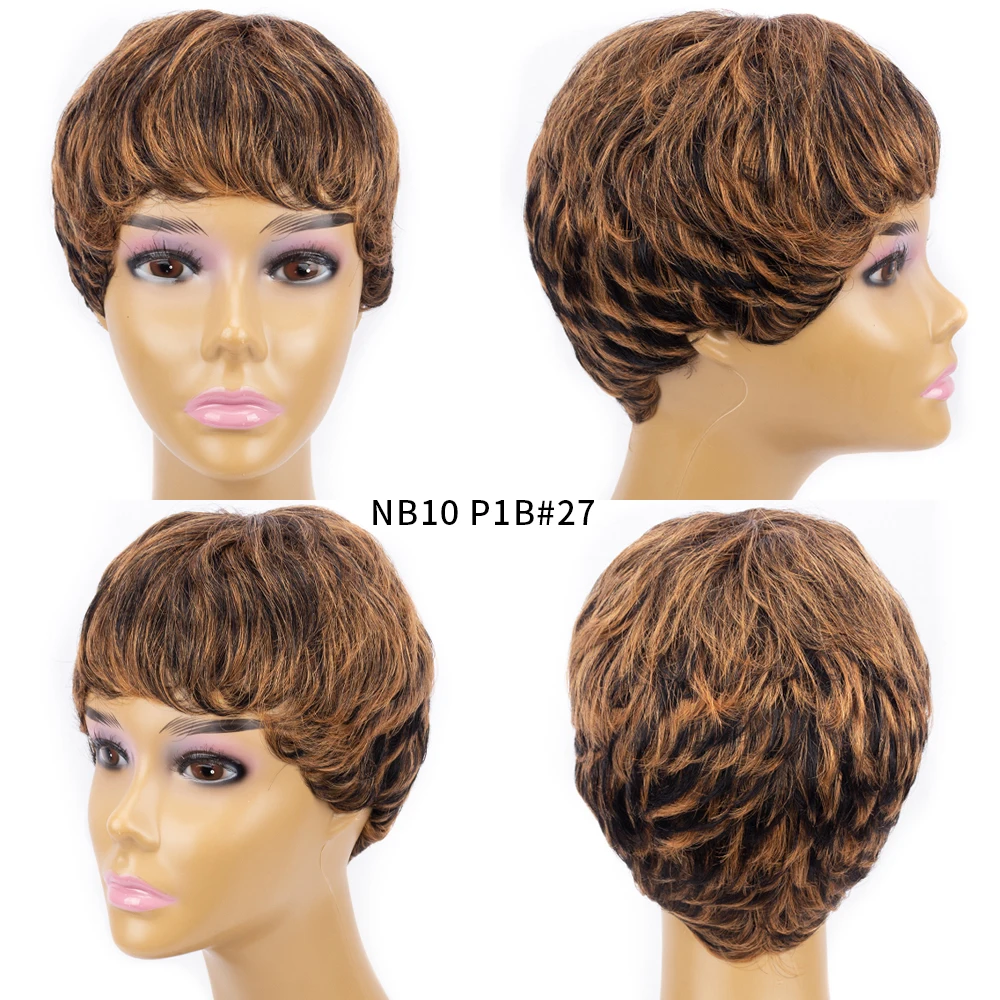 Парики из натуральных волос для чернокожих женщин, короткие человеческие волосы с челкой, коричневые дешевые парики из натуральных волос с бесплатной доставкой