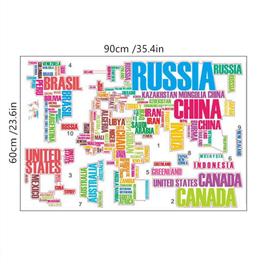 Английские буквы Цветной мир пазл Карта наклейки 3d настенная виниловая наклейка Настенные обои для домашнего украшения офиса водонепроницаемые обои 90*60 см
