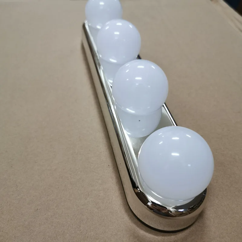 Особенности:Четырехъядерный светильник-обеспечивает естественное и равномерное освещение.Беспроводные-устанавливается за считанные секунды с помощью прилагаемых присосок, никаких инструментов или проводов не требуется.Портативный дизайн-снимите его с зеркала и в дороге, легко помещается в чемодан или вещевой мешок.Ненагревающиеся лампочки-прослужить До 50000 часов, требуются 4 батарейки типа АА-Не входит в комплект.Сливается для бесшовного вида в вашей ванной или спальне. Прекрасный подарок для мам, бабушек, сестер, дочерей, друзей и подружек невесты.Характеристики:Цвет: белыйМатериал: АБС-пластикНапряжение: 6 ВМощность: переключательОсновной объем применения: внутреннийФорма лампы: круглый светильникТип переключателя: тип кнопкиИсточник питания: 1 Вт светильникРазмер формы: 330x90ммПосылка включает в себя:1 x светодиодный косметический зеркальный светильник