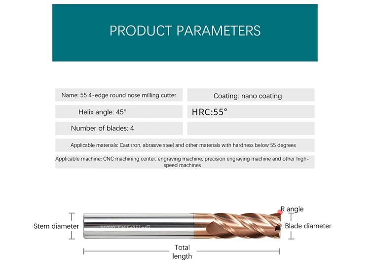 HRC55 4 Флейта угловой закругления Конец фрезерования Описание