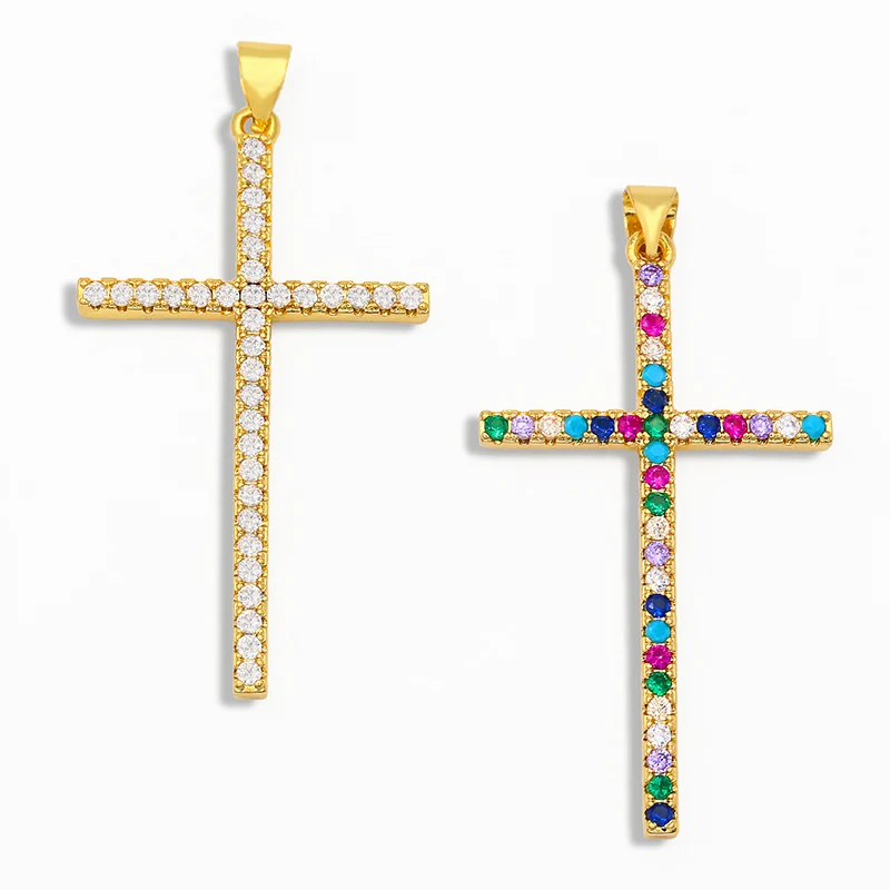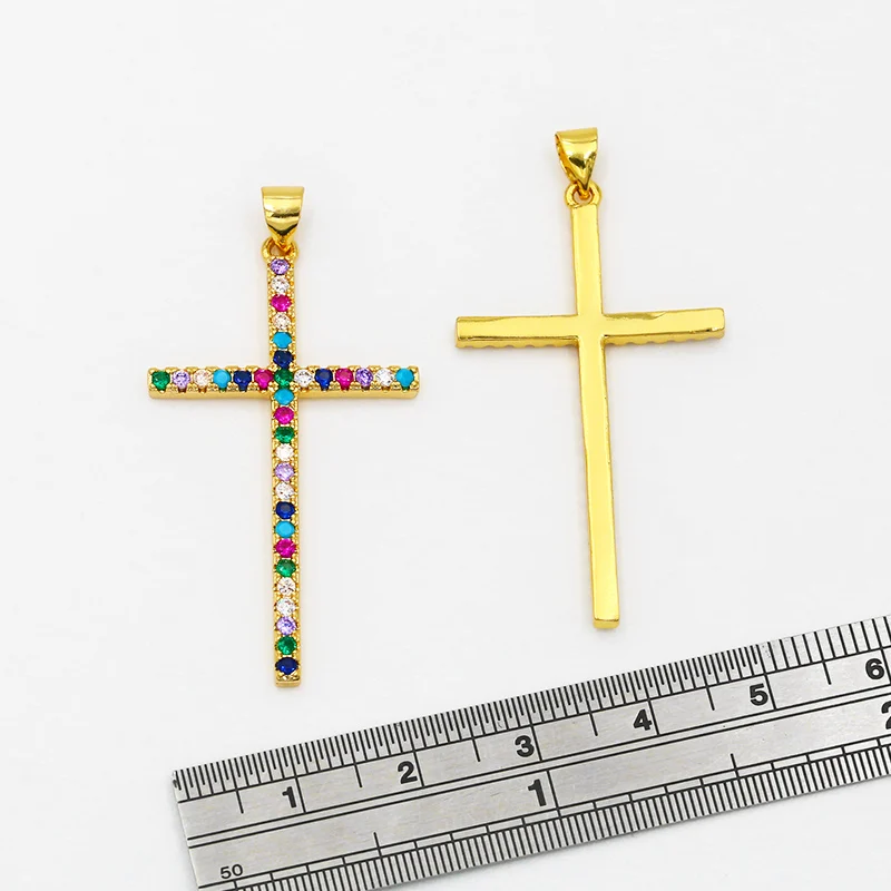 Подвеска-Крест OCESRIO, из белого кубического циркония, с большим золотым крестом, для изготовления ювелирных изделий ручной работы, pdta113