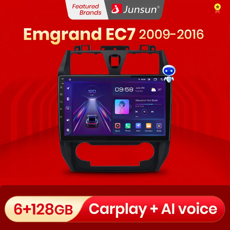 Junsun V1 AI Голосовое CarPlay Автомагнитола Магнитола Мультимедиа автомобиля джили эмгранд ec7 для Geely Emgrand EC7 1 2009-2016 Android auto 4G GPS трекер навигатор 2 DIN 2 дин андройд Аудио Автомагнитолы
