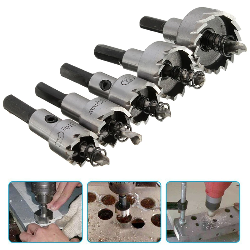 Набор корончатых Сверл из быстрорежущей стали с твердосплавным наконечником, 5 шт., 16-30 мм, 1618, 5202530 мм