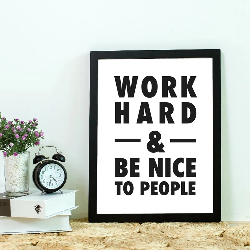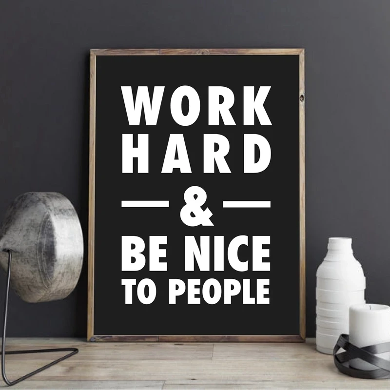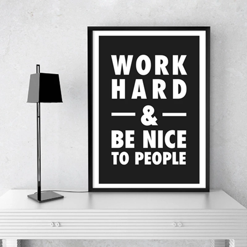 Работайте усердно и будьте добры для людей, вдохновляющие цитаты, плакаты и принты, черно-белая Настенная картина на холсте, современный офисный Декор