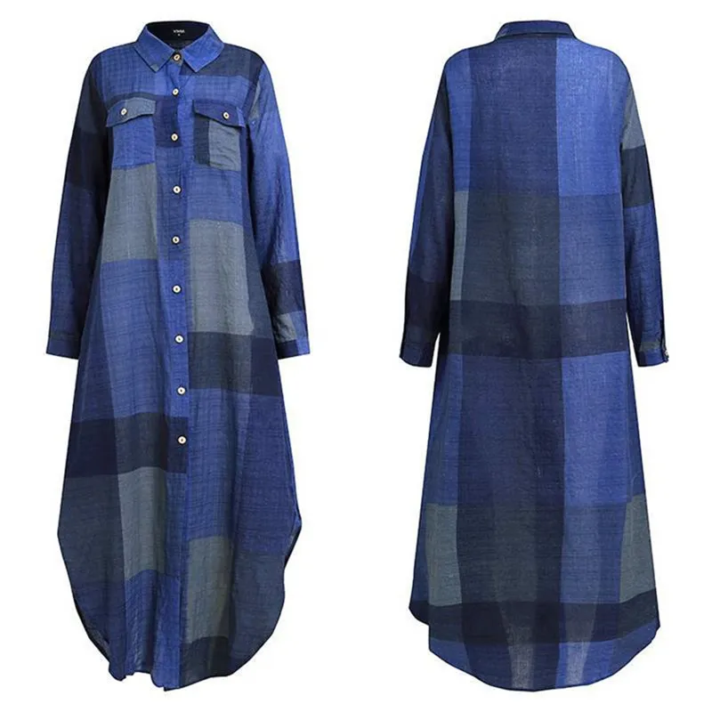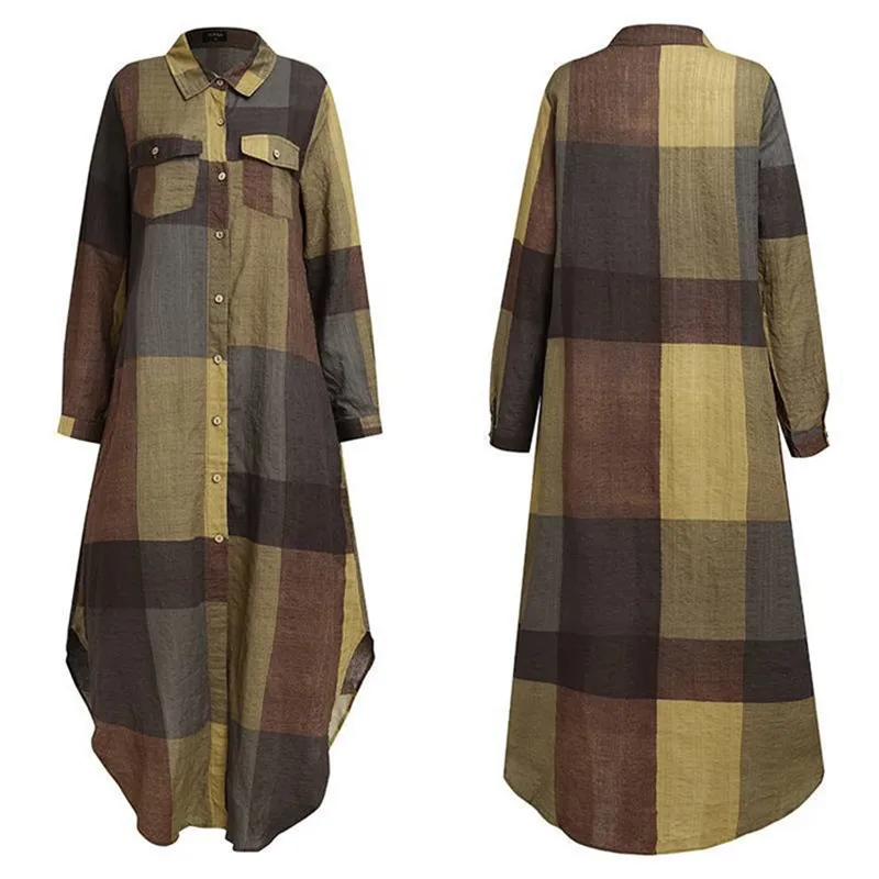 Осеннее длинное платье-рубашка с длинным рукавом, женские длинные п...