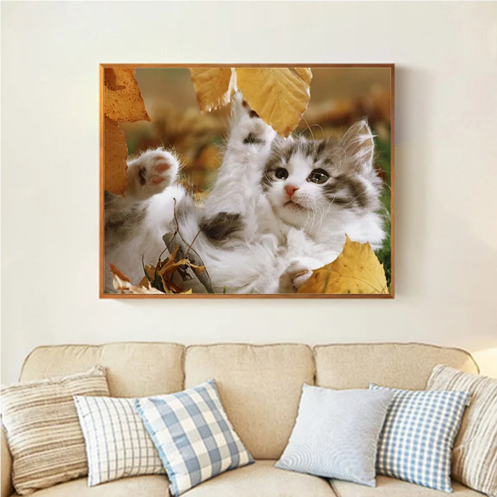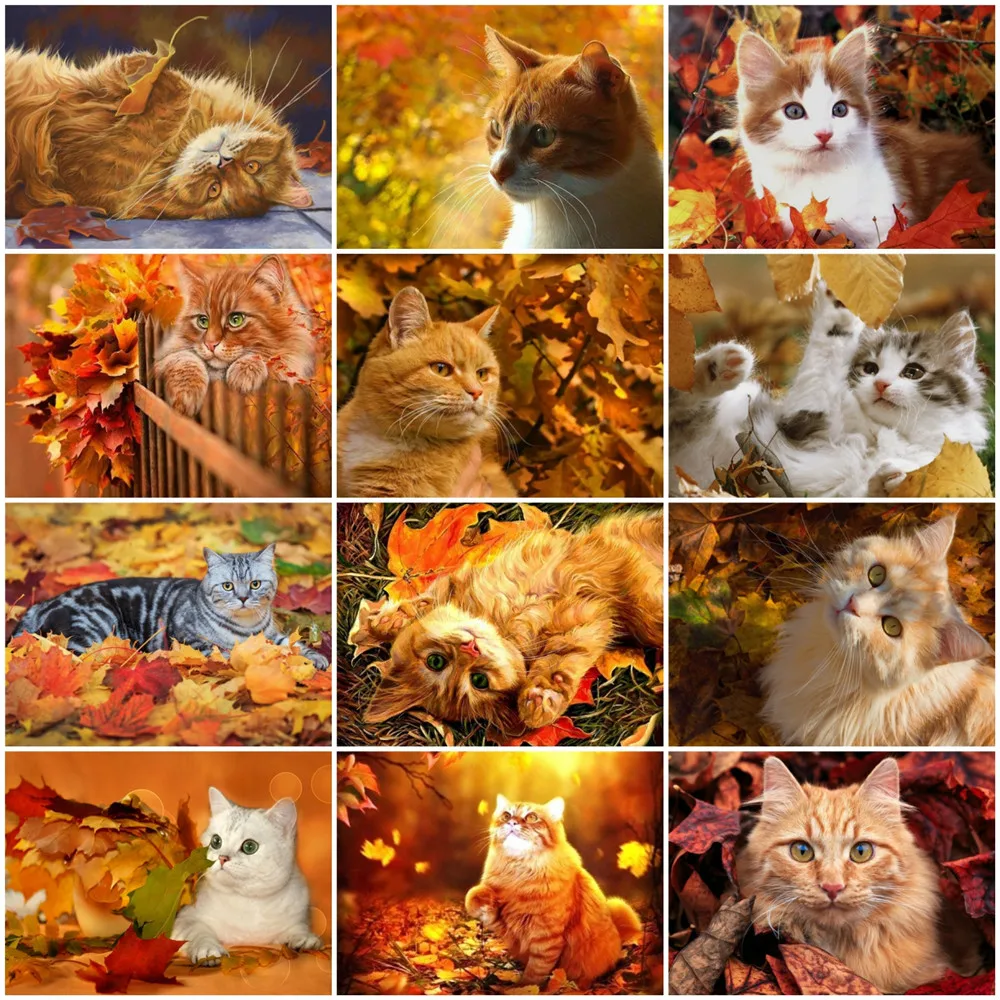 Алмазная живопись HUACAN 5D сделай сам с котом, мозаика для вышивки крестиком, Осеннее украшение для дома