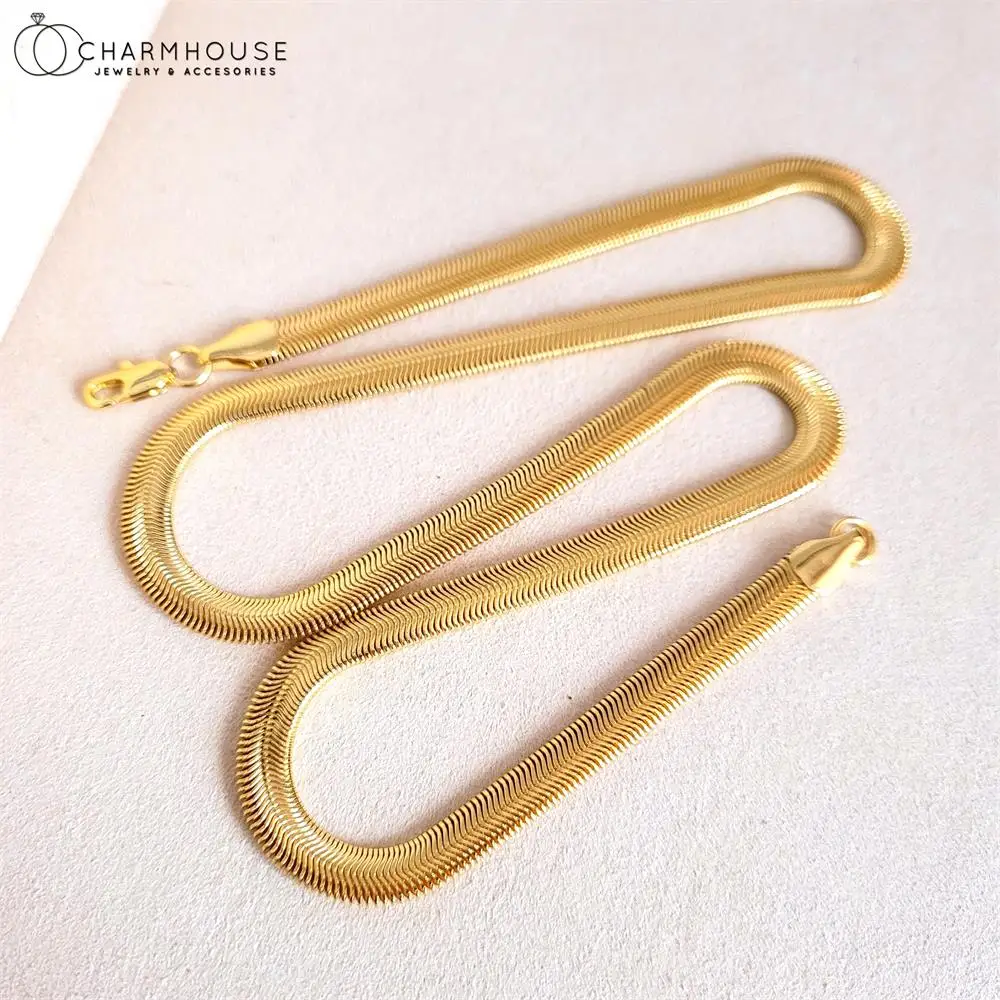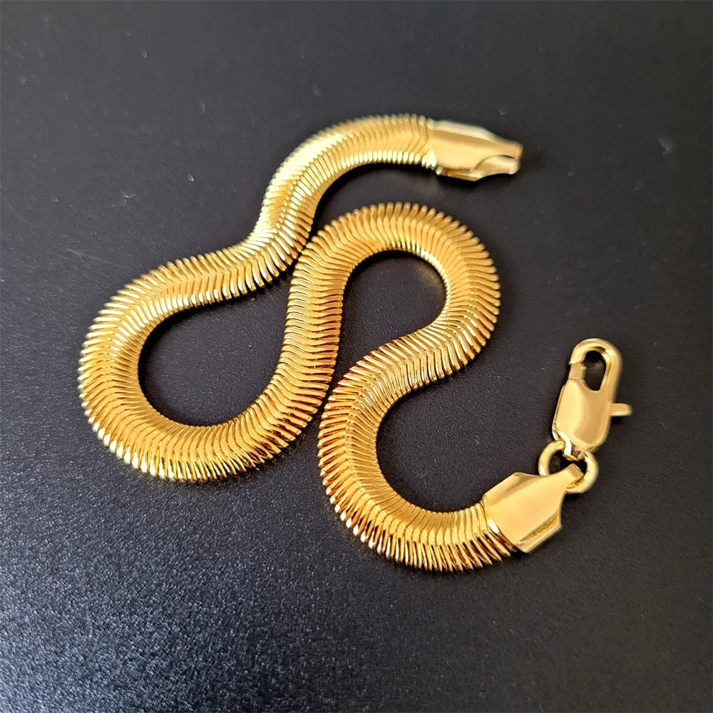 Набор ювелирных изделий из 18-каратного золота GP для мужчин и женщин, плоская цепочка-змейка 6 мм, ожерелье, браслет, 2 шт. в комплекте, модные ювелирные украшения, бижутерия