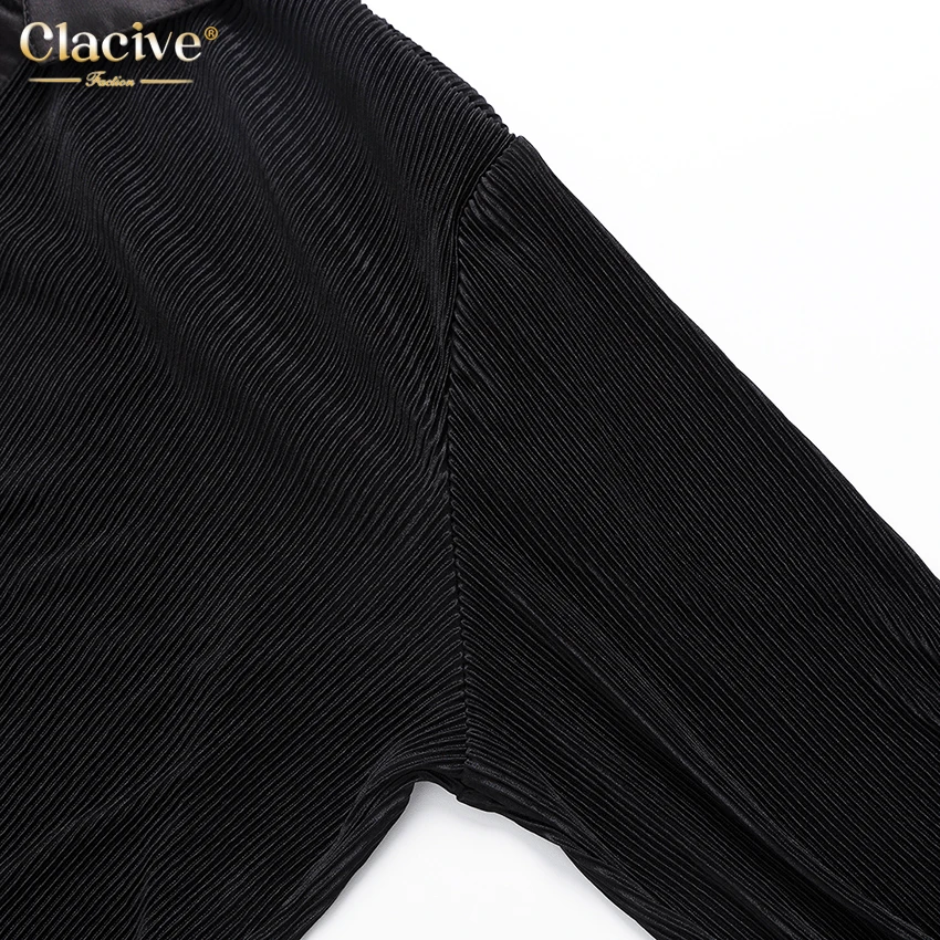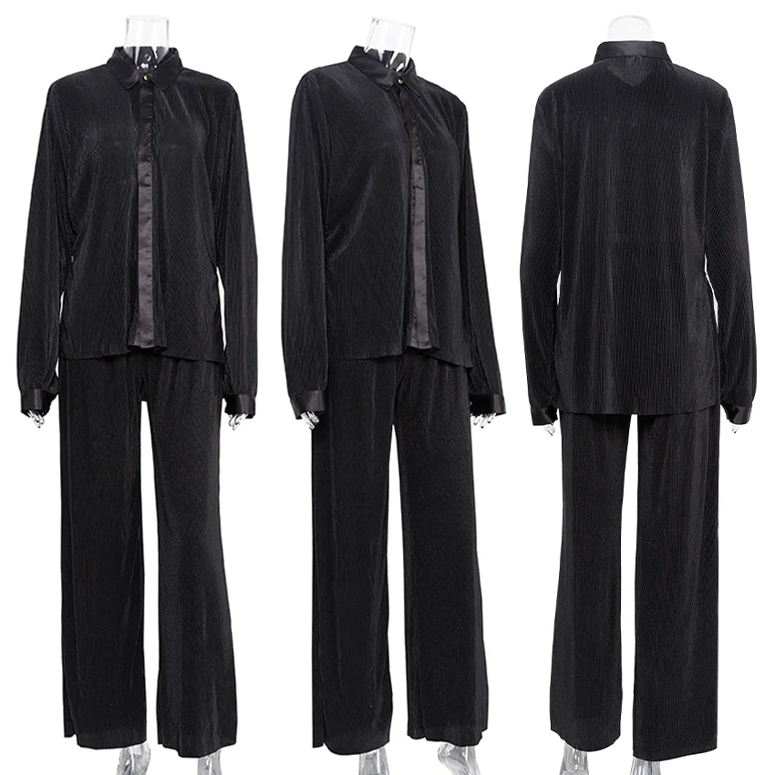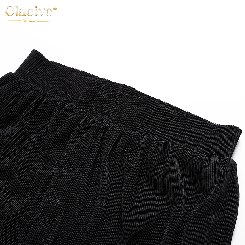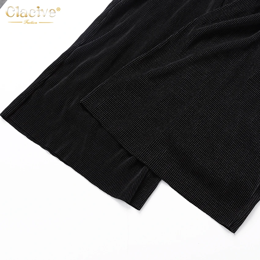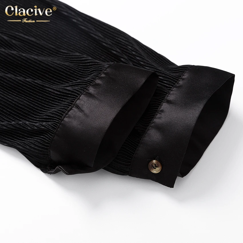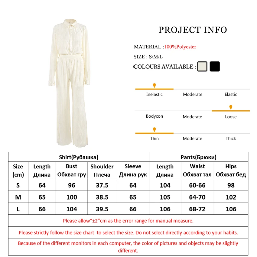 Женский плиссированный домашний комплект Clacive, бежевая Повседневная Блузка с отложным воротником и длинным рукавом, широкие брюки с высокой талией, уличная одежда, 2 шт.
