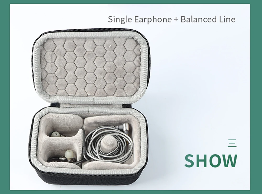 Оболочка из ЭВА с плетеной тканью, покрытой боками, предотвращает потертости и раздавливание; Внутренняя подкладка из ткани для защиты наушников