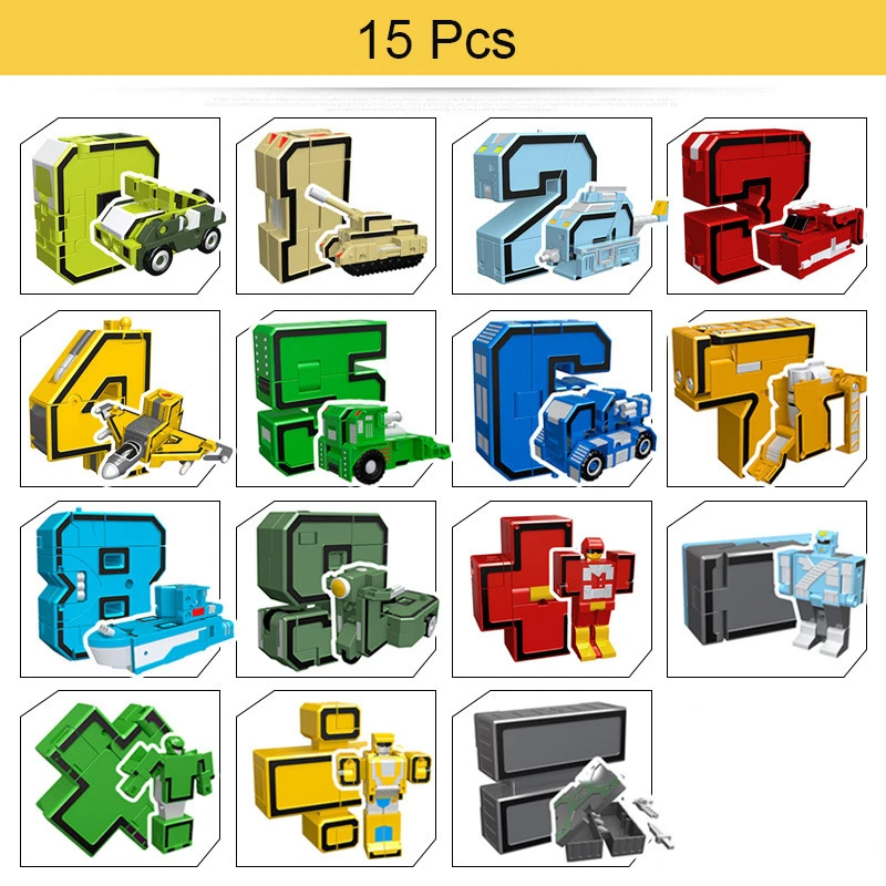 15 шт., набор строительных блоков для творческой сборки «сделай сам», фигурка, трансформация, цифровой робот-деформация, обучающая игрушка для детей