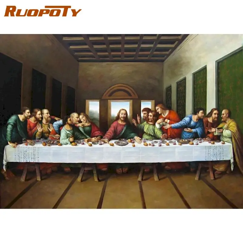 Картина для раскрашивания по номерам RUOPOTY, картина маслом, пейзаж для последнего ужина, 60x75 см, Современный домашний декор для стен фото