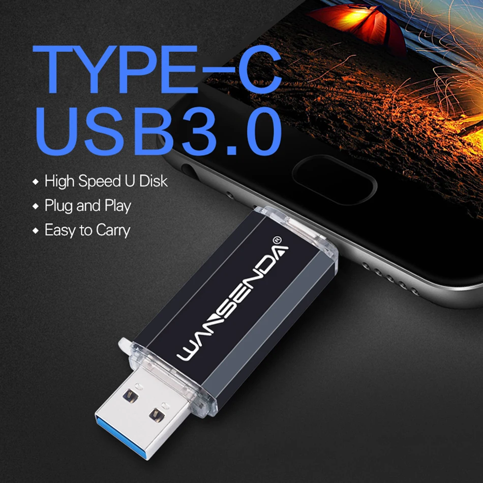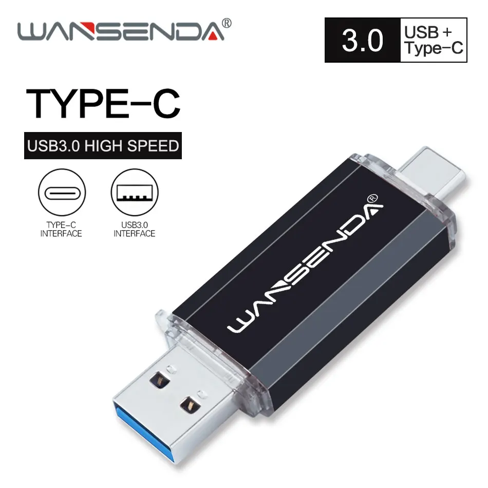 Флеш-накопитель WANSENDA OTG 2 в 1, USB 3,0 и Type C, 32 ГБ, 64 ГБ, 128 ГБ, 256 ГБ, 512 ГБ, внешний накопитель, флешка, USB-карта