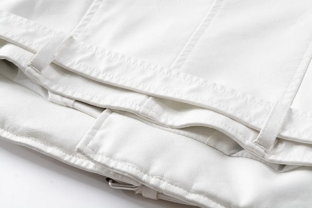 Куртка женская Байкерская из искусственной кожи, на молнии, черно-белая, с ремнем, осень 2021