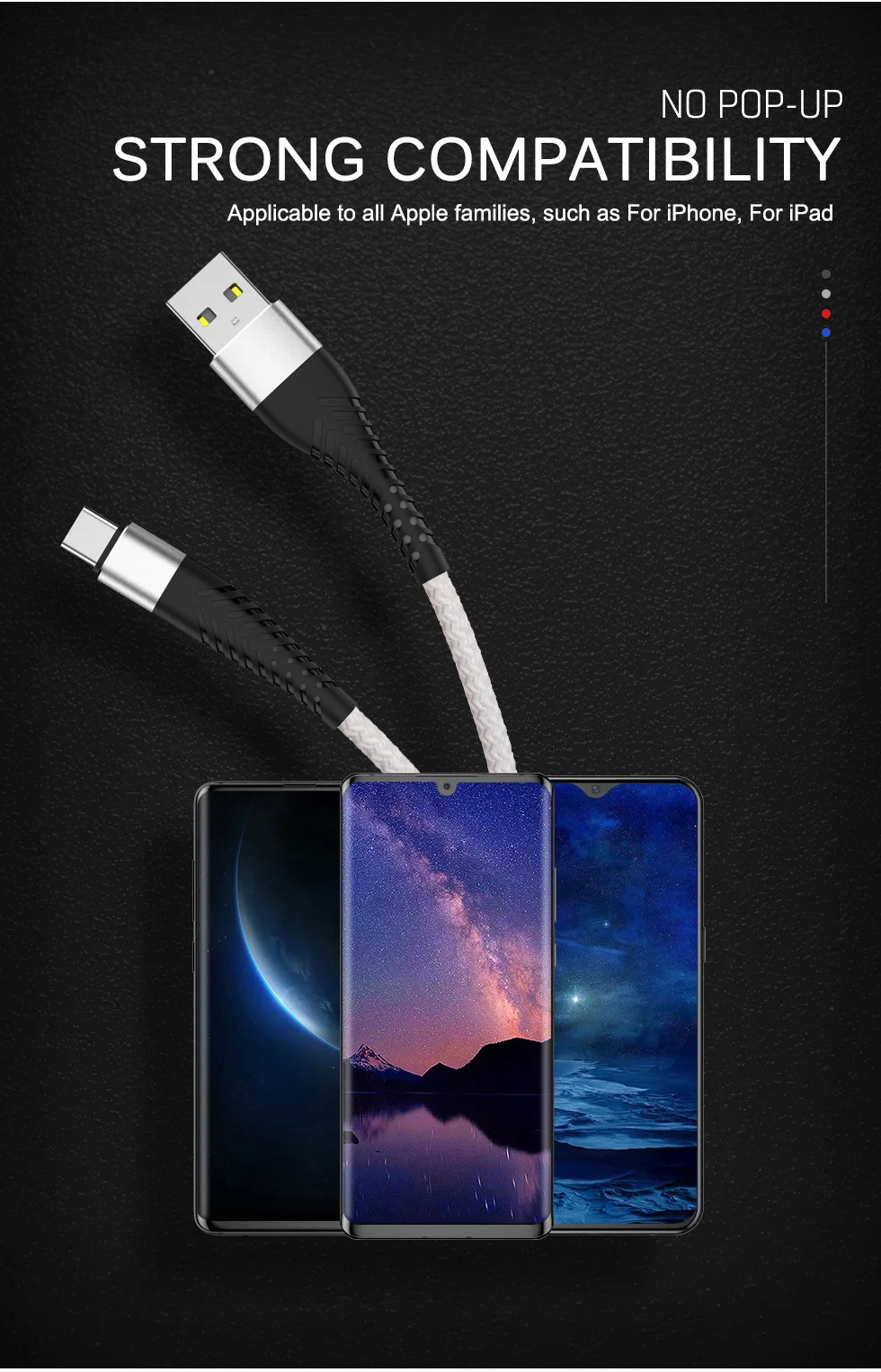 Тип C USB кабель для Samsung S10 S20 A51 A71 Huawei P30 Mate 30 Lite Plus Xiaomi mi Redmi Note 8 10 Провод быстрой зарядки Короткий 0.2 м долго 1м 2м 3м линия, шнур зарядного мобильного телефона USBC 1 2 3 метра