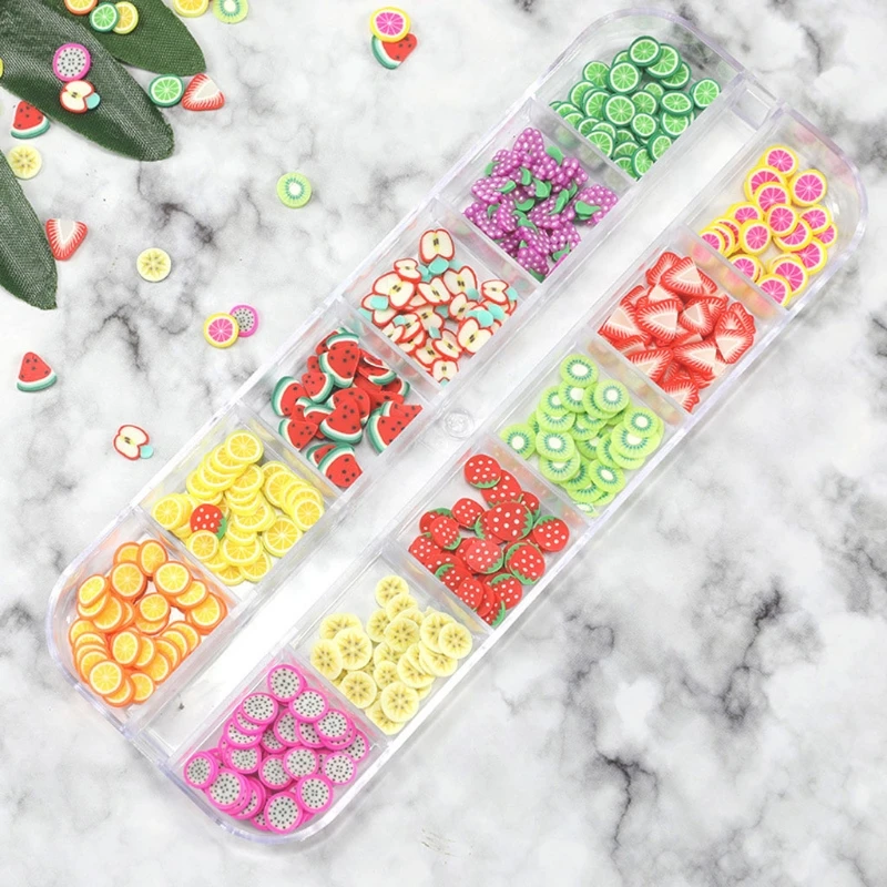 Мягкая полимерная глина, наполнители для ювелирных украшений сделай сам, 12 ячеек, цветок, фрукты, животные, глиттер, эпоксидная смола