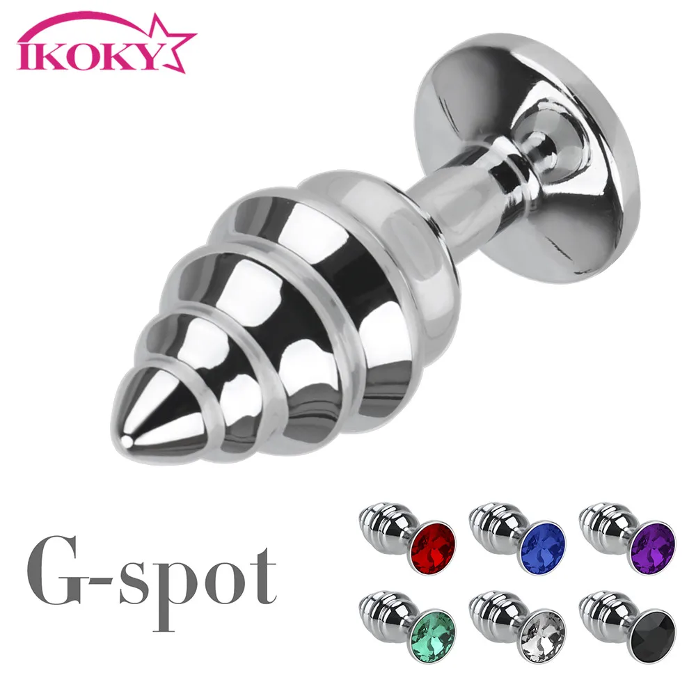 Анальная пробка IKOKY с металлической резьбой для стимуляции ануса, массажер простаты интимные игрушки для женщин Men, анальная пробка из нержавеющей стали