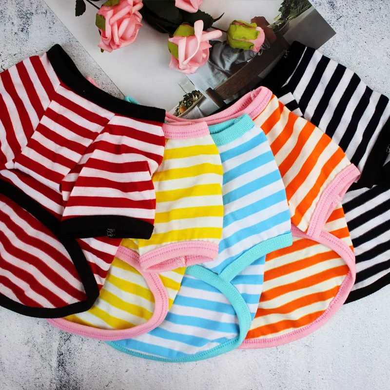 Летняя одежда для собак, жилет для маленьких собак, полосатая футболка с коротким рукавом, хлопковый жилет для собак, рубашка, одежда для щенков, аксессуары, костюм