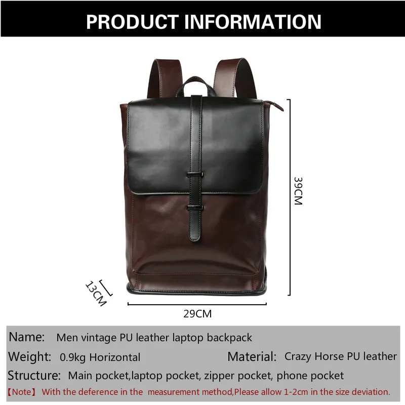 【Продукт】Мужской винтажный кожаный рюкзак для ноутбука, сумка для школьного бизнеса