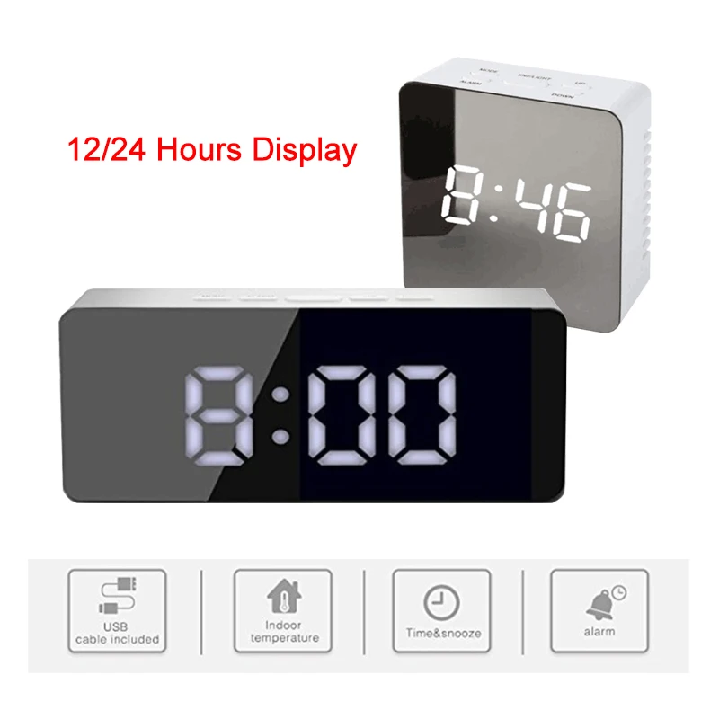 * Светодиодный зеркальный цифровой будильник многофункциональен: будильник, дисплей температуры, светодиодный светильник, зеркало для макияжа.