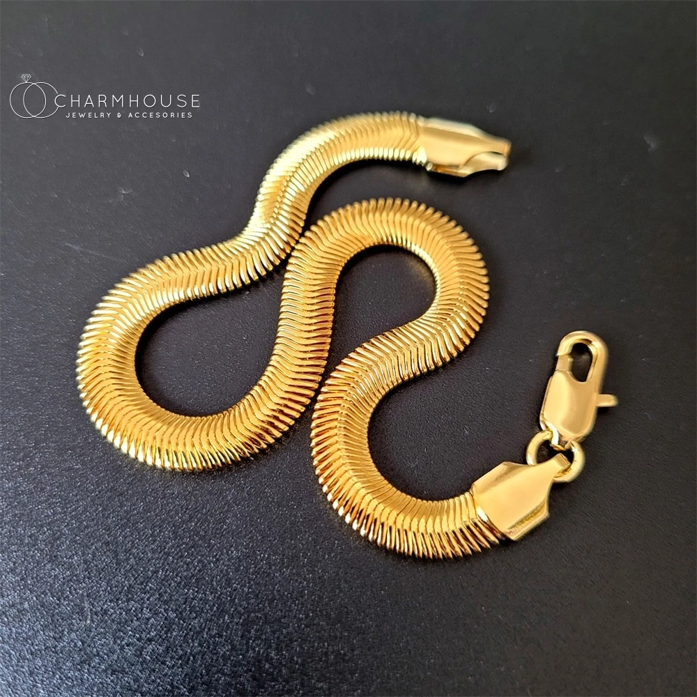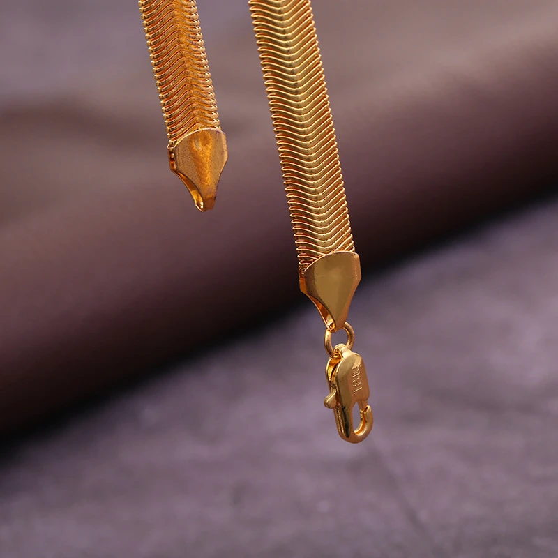18K золото GP змея цепи браслеты для мужчин 6 мм на мягкой плоской подошве с отделкой Браслеты Браслеты-кольца в едином положении во время занятий легкой атлетикой, трендовые ювелирные изделия аксессуары вечерние подарки