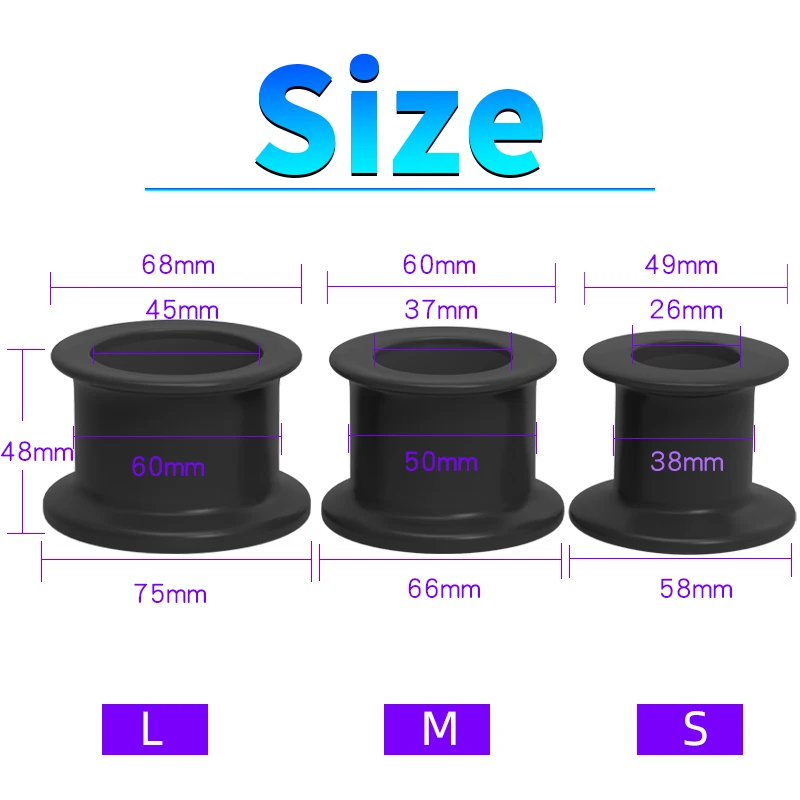 Размер: 48*49*38*58 мм (Анальное кольцо-S); 48*60*50*66 мм (Анальное кольцо-M); 48*68*60*75 мм (Анальное кольцо-L)