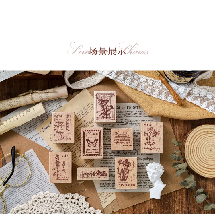 Деревянный завод с украшением в виде милого цветка установленный деревянная резиновая печать для рукоделия дневник писем и ремесло Скрапбукинг