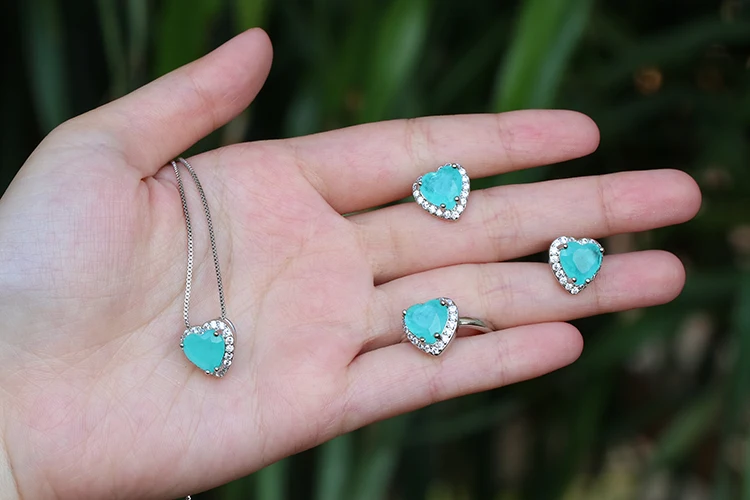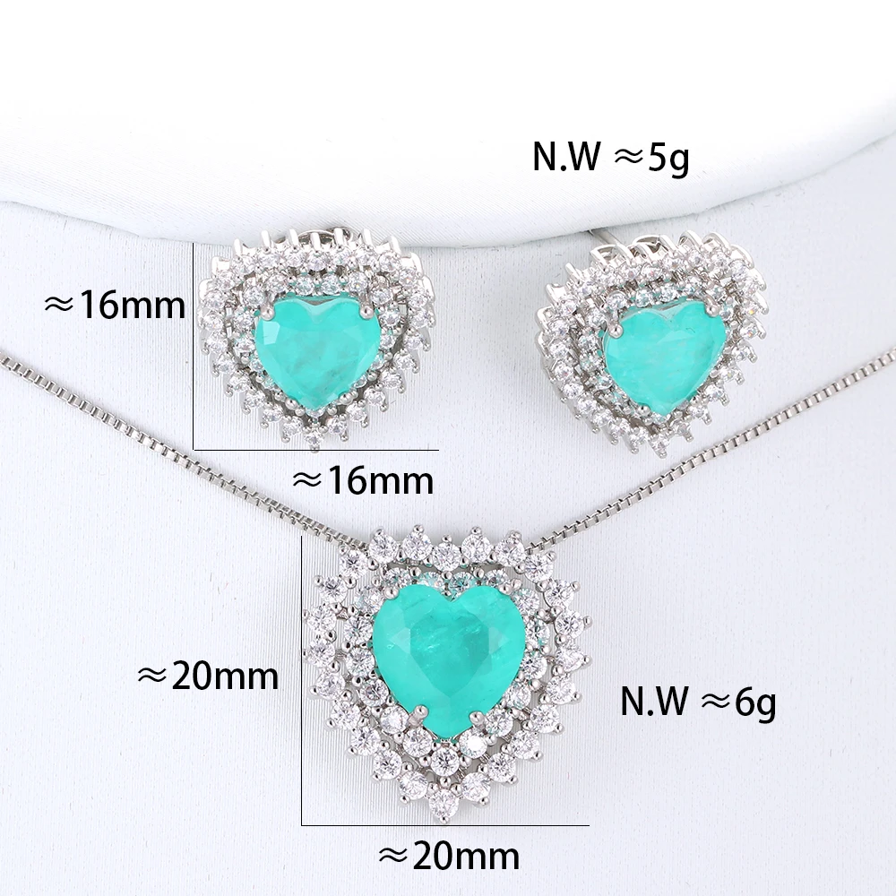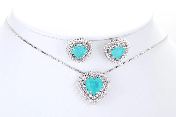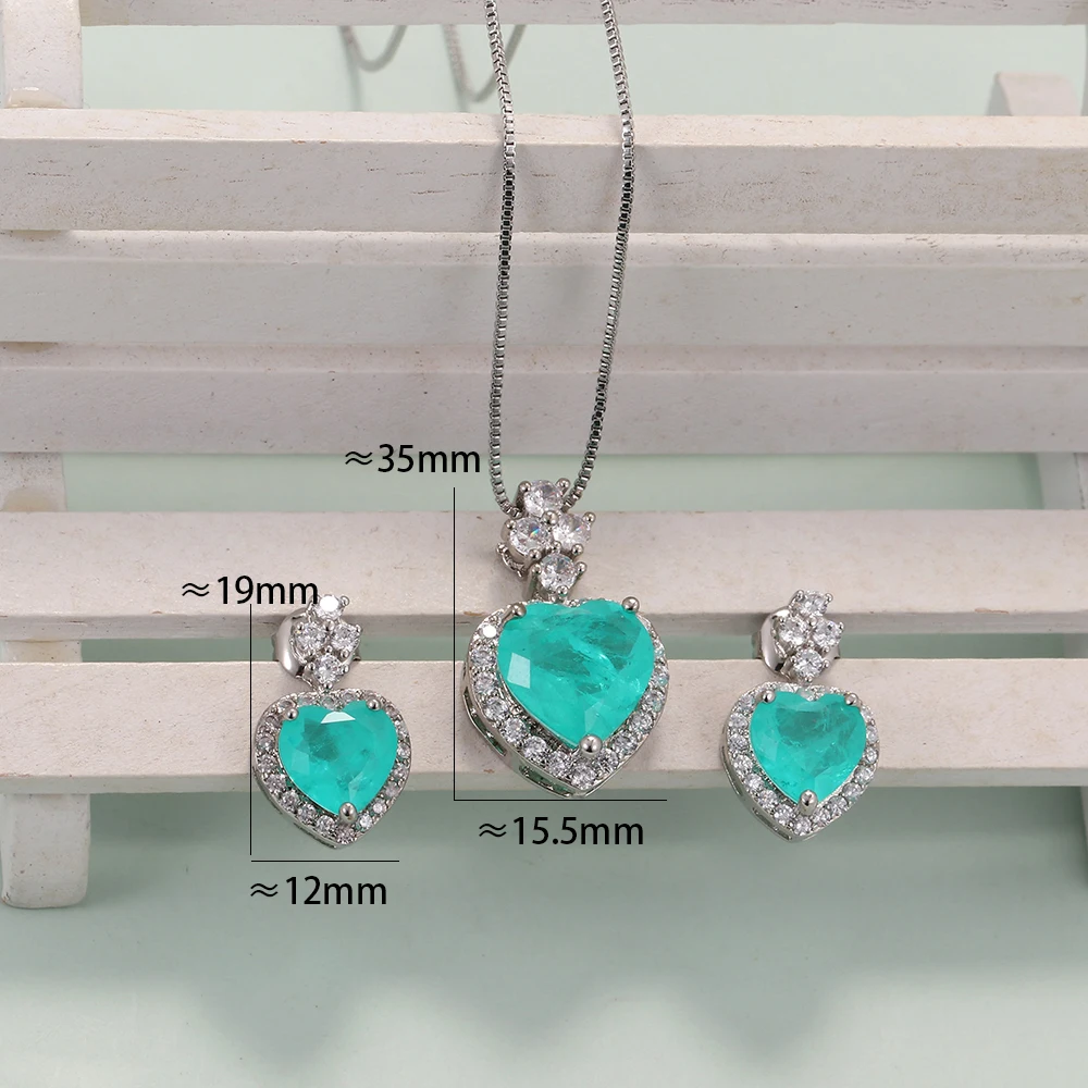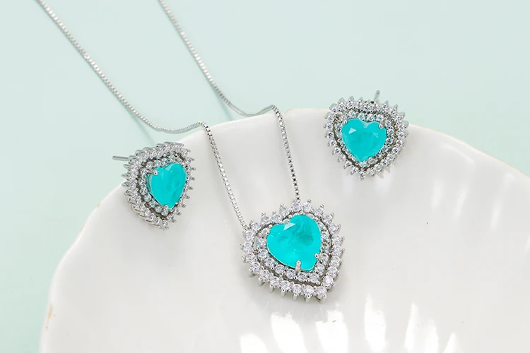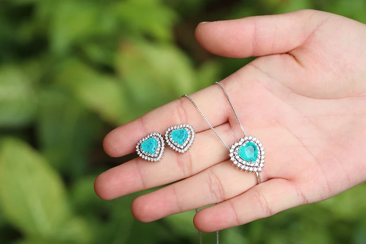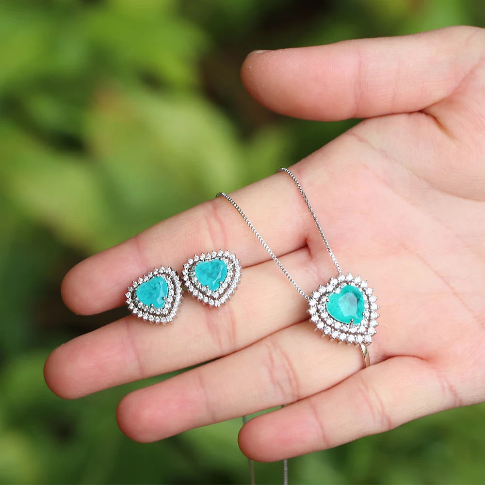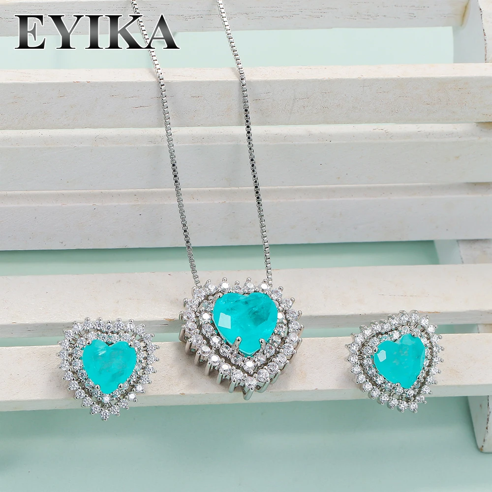 EYIKA, романтическое сердце из паралиба, турмалиновые циркониевые ожерелье, серьги, роскошные серьги для свадьбы, помолвки, Дня Святого Валентина