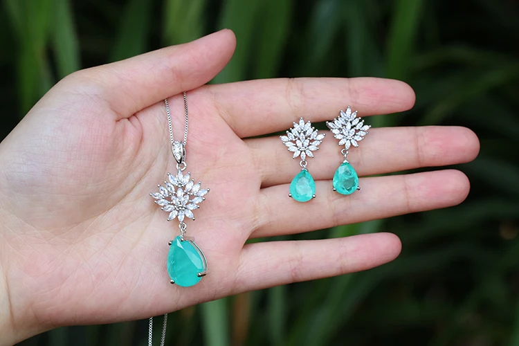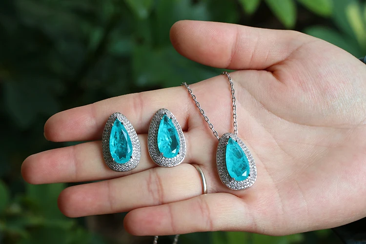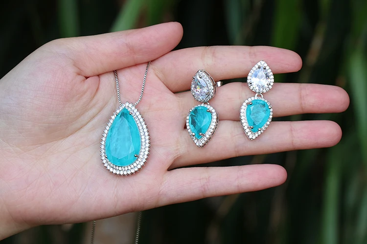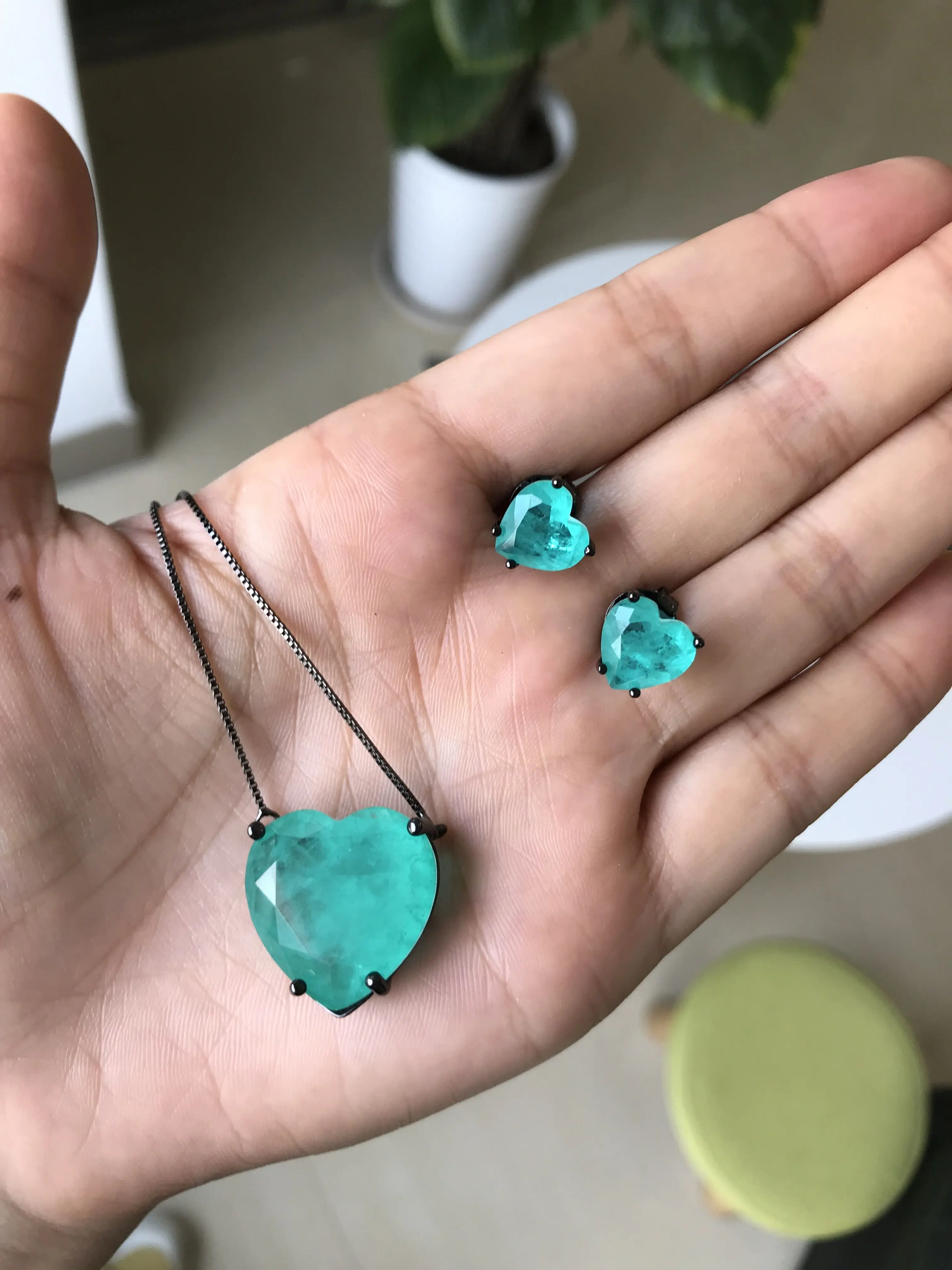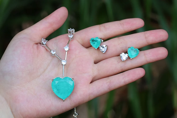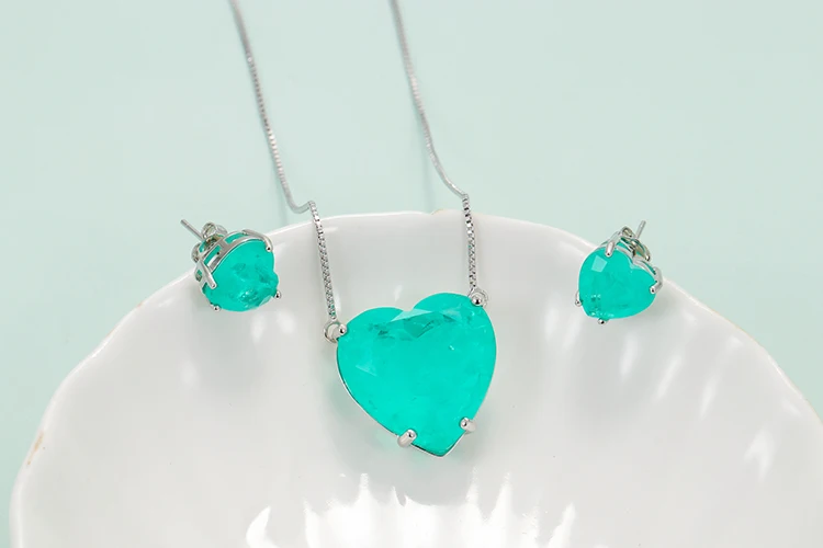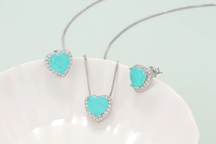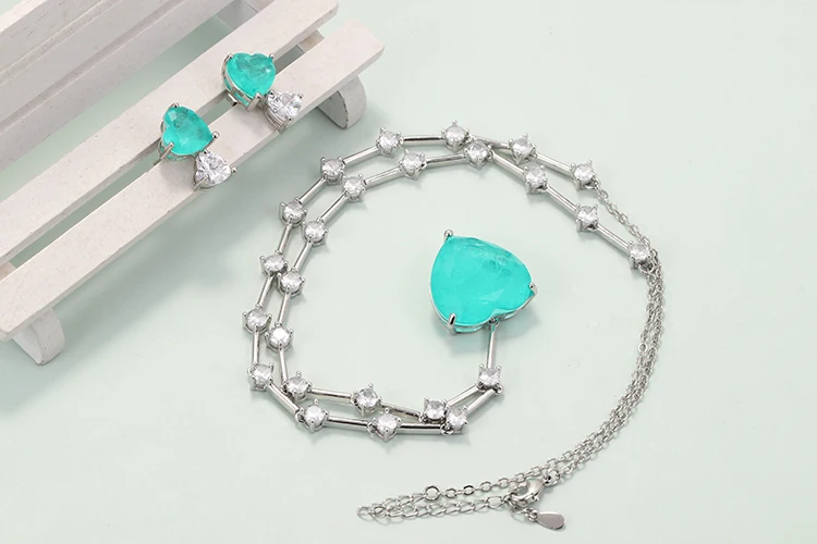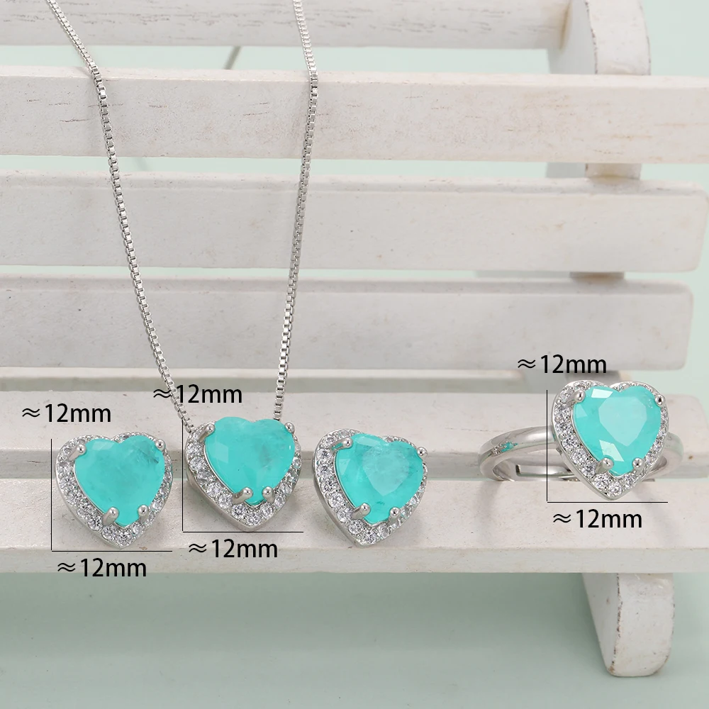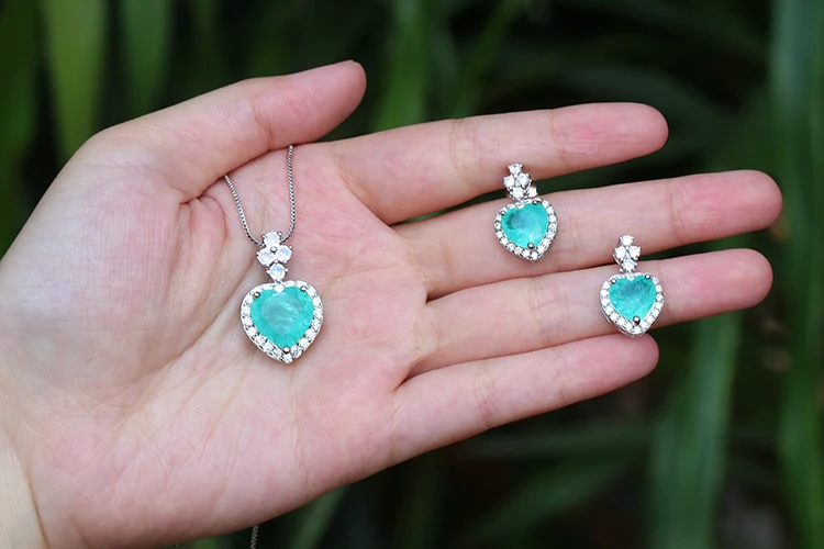 EYIKA, романтическое сердце из паралиба, турмалиновые циркониевые ожерелье, серьги, роскошные серьги для свадьбы, помолвки, Дня Святого Валентина