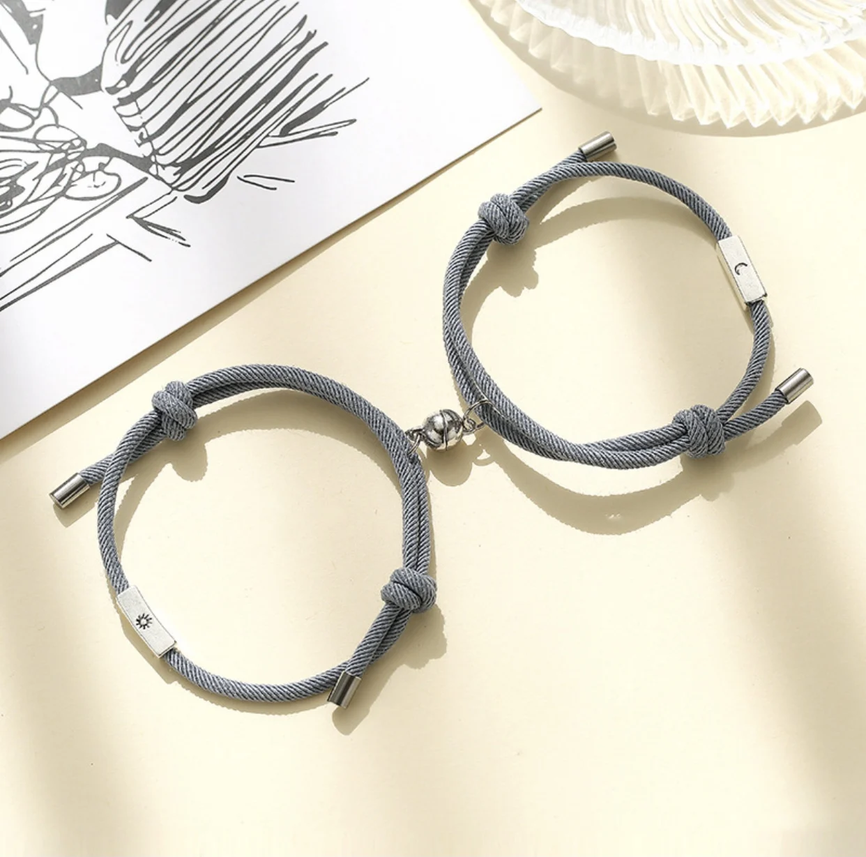 2 шт.компл. Регулируемый магнитный браслет с подвеской в виде Солнца и Луны для пар, детские подарки для мужчин и женщин