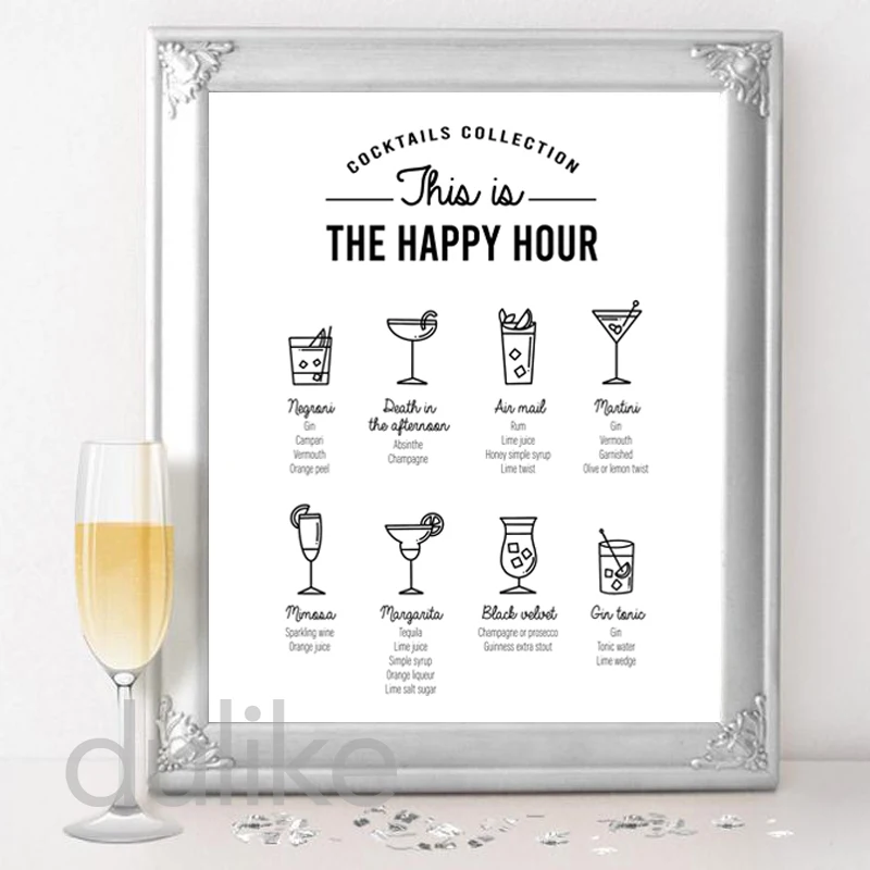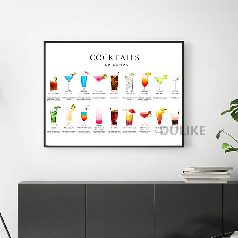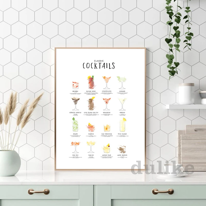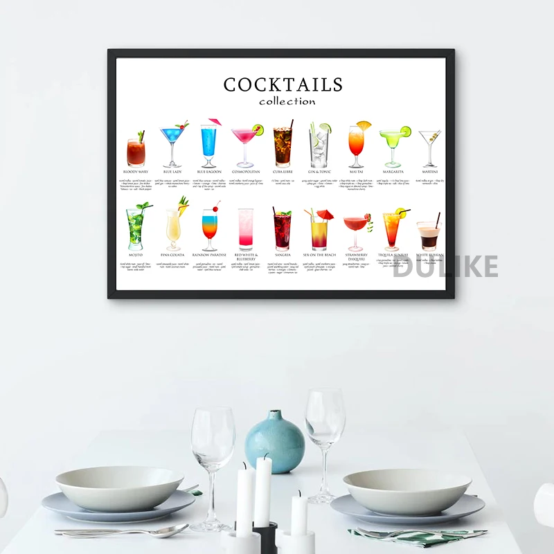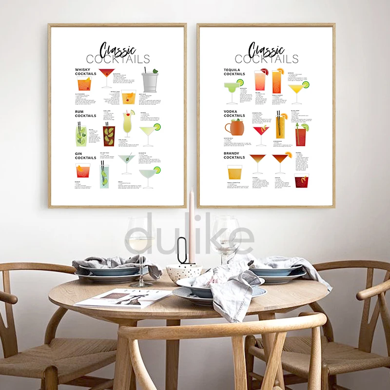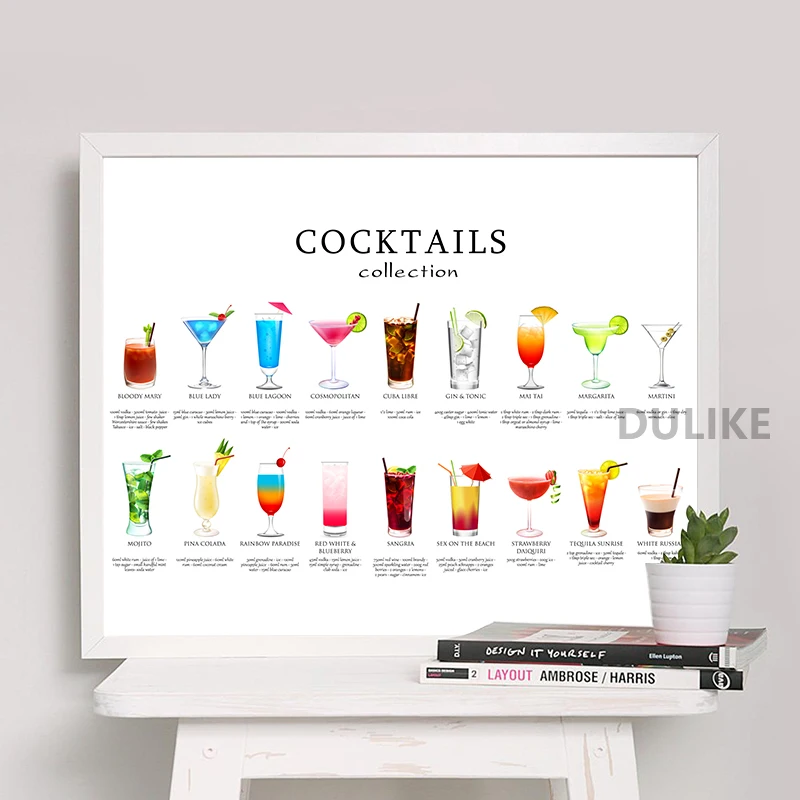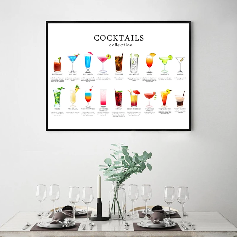 Коктейль по рецепту плакат Художественная печать украшение кухонной стены, коктейль подарок коктейлей холст картины настенные картины