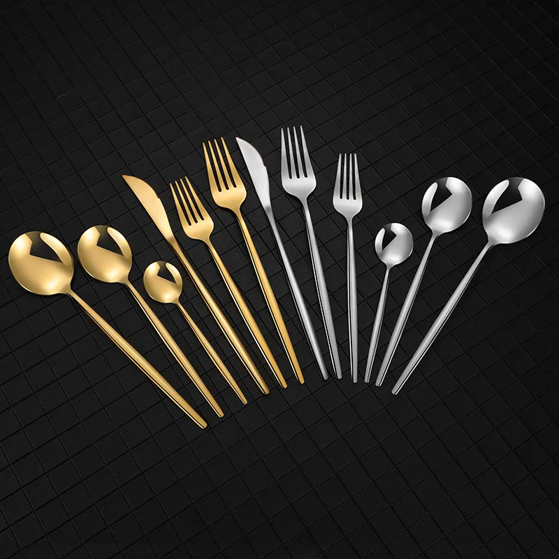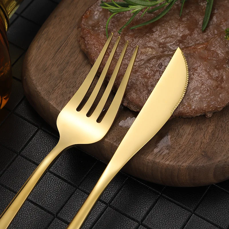 Набор столовых приборов и ложек из нержавеющей стали, золотой, португальский столовые приборы, Западный нож для стейка, десертная ложка, кофейная ложка