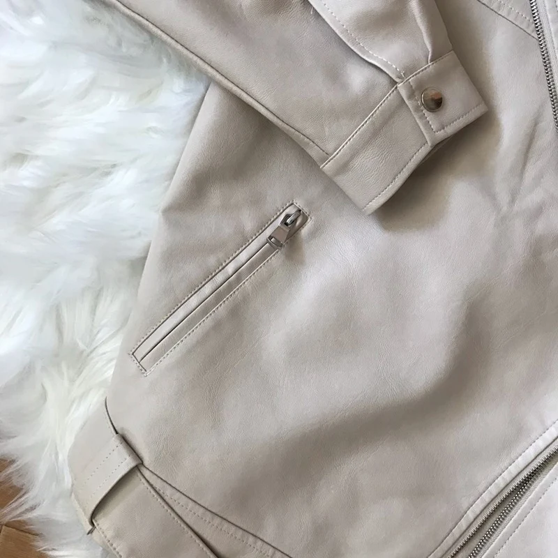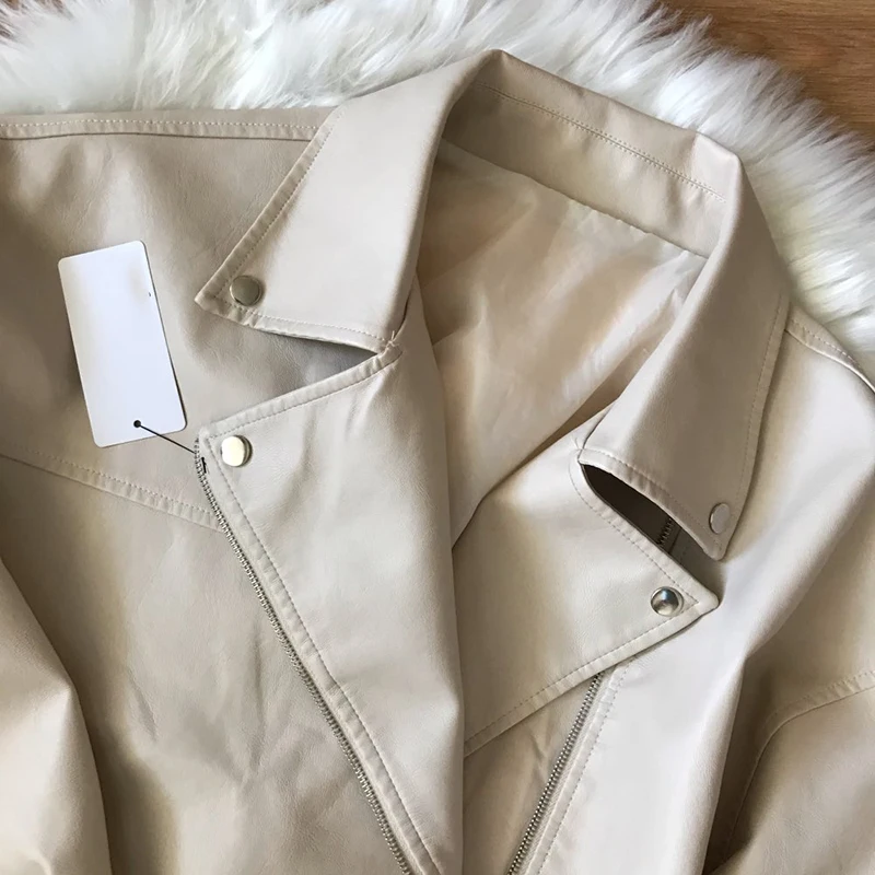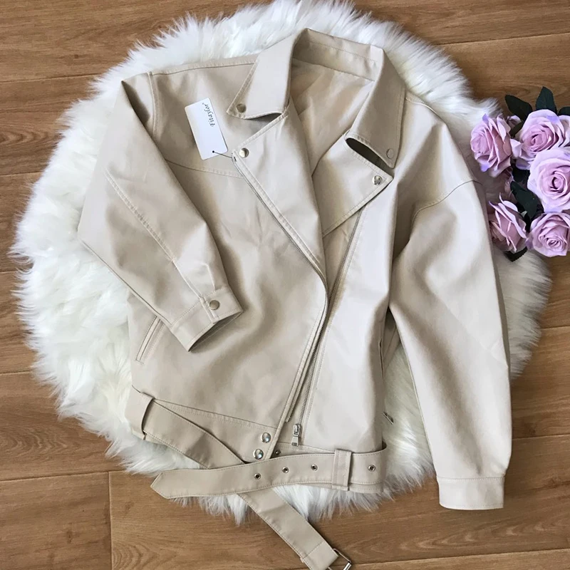Женская мотоциклетная куртка из искусственной кожи, однотонная свободная повседневная куртка из искусственной кожи с поясом, весна-осень 2022
