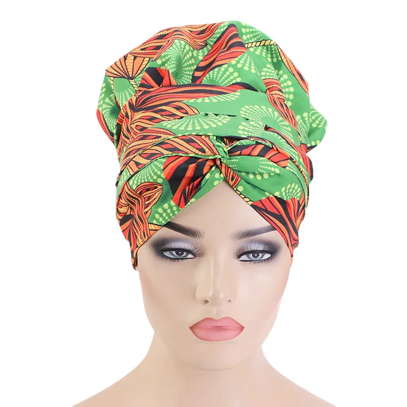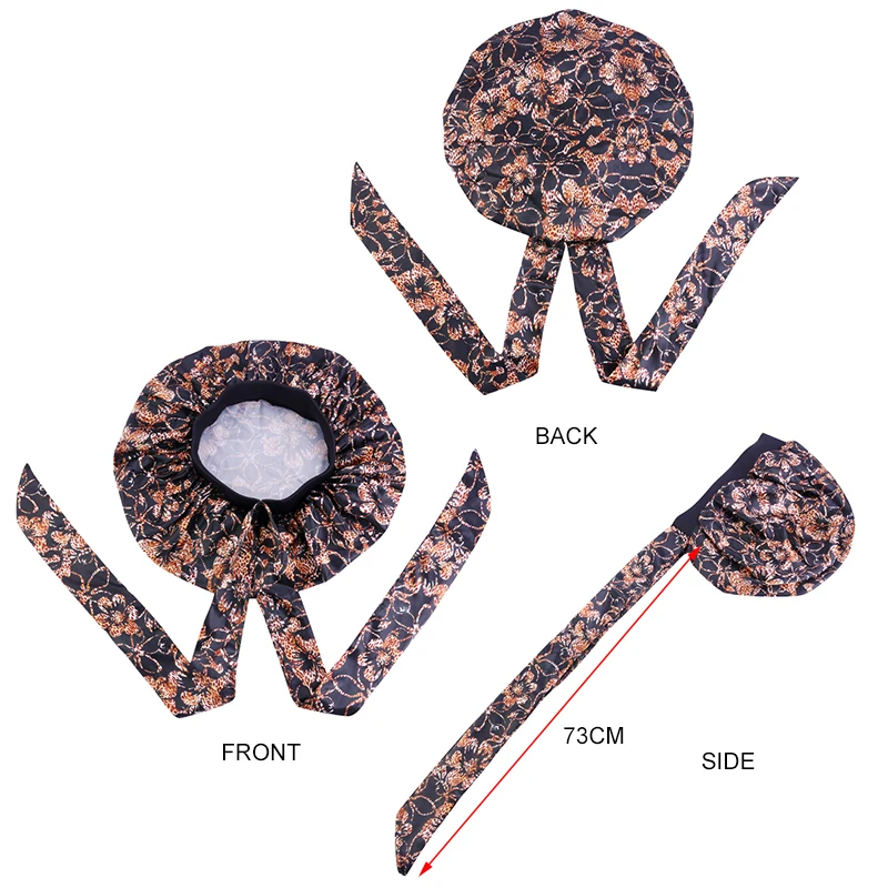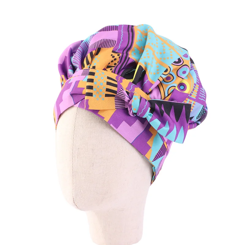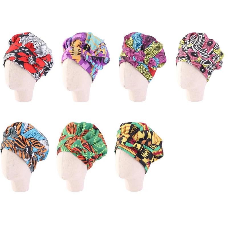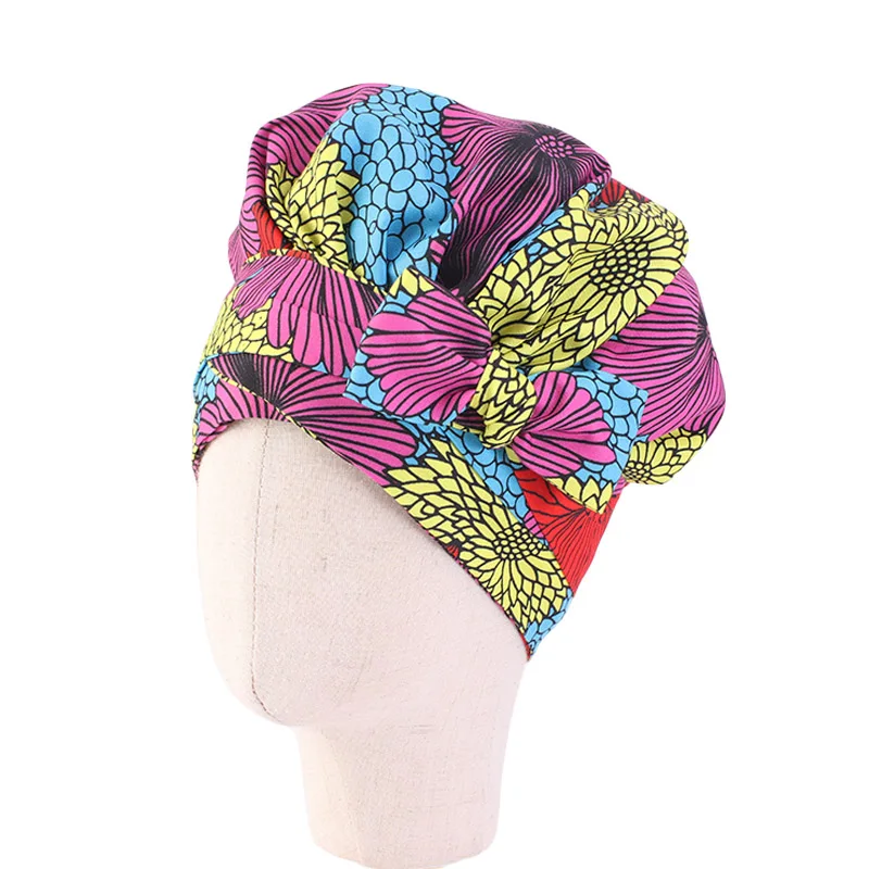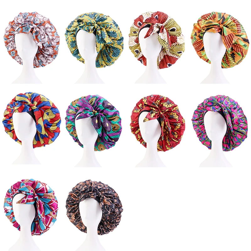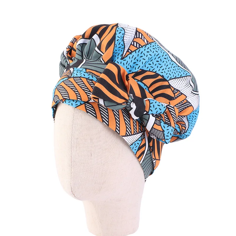 Женская атласная повязка на голову с Африканским принтом, двухслойная повязка на голову с длинной лентой, аксессуары для волос из Анкары