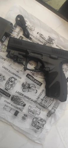 Я могу купить зеленый лазер дешево. Подходит для компактных пистолетов. Прикрепить к Px4, G19, M и p9.работает без проблем. Иллюстрация на оберточной бумаге хорошая. Положите в прозрачный чехол и Украсьте его.