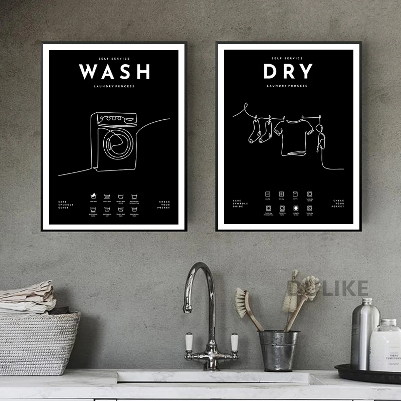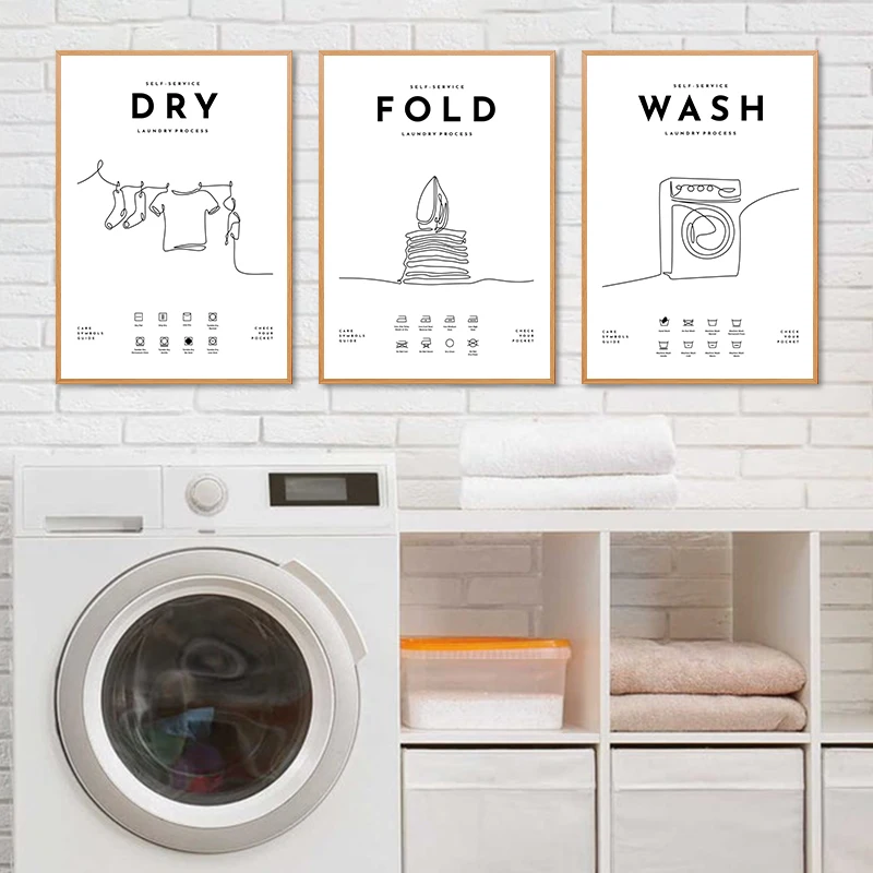 Наклейки для ухода за стиркой, плакат для стирки, художественные принты, декор для прачечной, настенные художественные картины для украшения на холсте