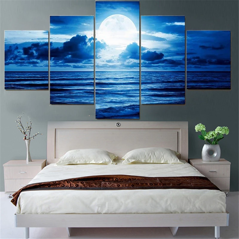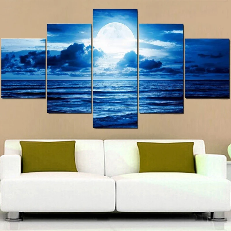 Настенная живопись на холсте, HD принты, 5 шт., полнолунная Ночная ...