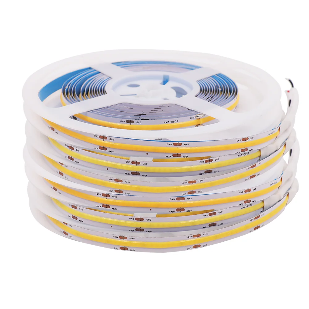 COB Светодиодная лента 384 528 светодиодов высокой плотности гибкий COB светодиодный светильник лампа DC12V 24V RA90 3000K 4000K 6000K Светодиодная лента 1m 2m 5m