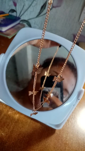 я заказывала серебряную подвеску, а мне пришла золотая, качество нормальное, но 1 бабочка была откреплена