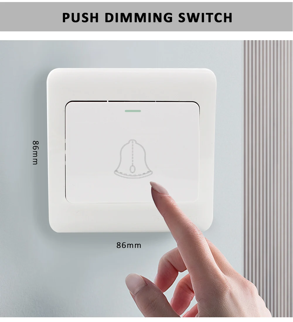 Также работает с кнопочным диммером● Короткое нажатие: включить или выключить светильник.● Длинное нажатие (1-6 с): Нажмите и удерживайте, чтобы уменьшить пошаговое затемнение, с каждым другим длинным нажатием, уровень светильник переходит в противоположное направление.● Память затемнения: светильник возвращается к предыдущему уровню затемнения при включении и выключении снова, даже при отключении питания.