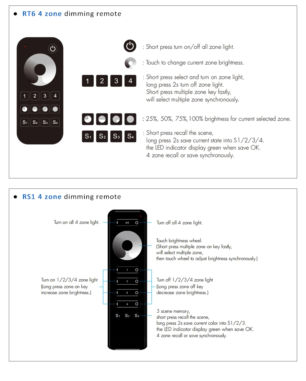 Пожалуйста, выберите подходящий пульт дистанционного управления по этой ссылке, есть 1 зона и 4 зоны и 8 зон дистанционного управления.● 1 зона означает синхронное управление всеми устройствами.● 4 зоны позволяют контролировать все устройства синхронно или независимо.Один пульт дистанционного управления может управлять более S1-B(WZ) устройстваОдин S1-B(WZ) устройство может управляться с помощью большего количества пультов
