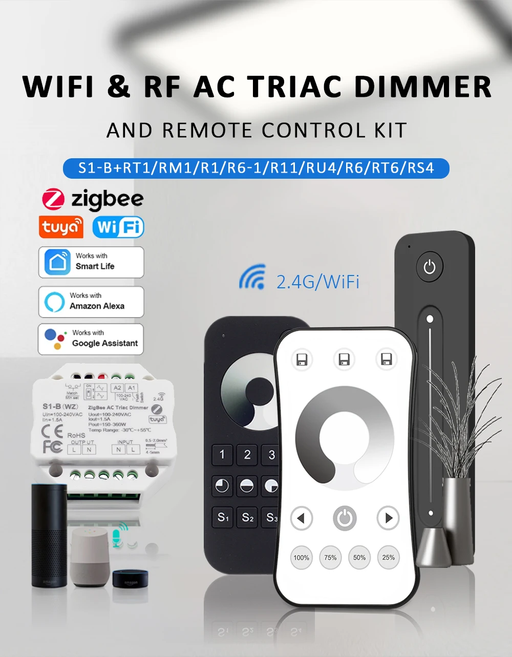Это зависит от того, какой из них вы выбрали, пожалуйста, проверьте фотографии SKU перед оплатой.Вы можете купить только диммер zigbee S1-B(WZ), вы можете купить пульт ДУ, если вам нужно.1 x Диммер ZigbeeИли1 Радиочастотный пульт дистанционного управления (не с батареей)