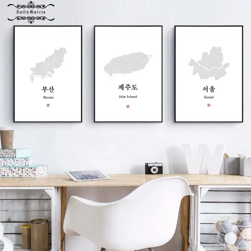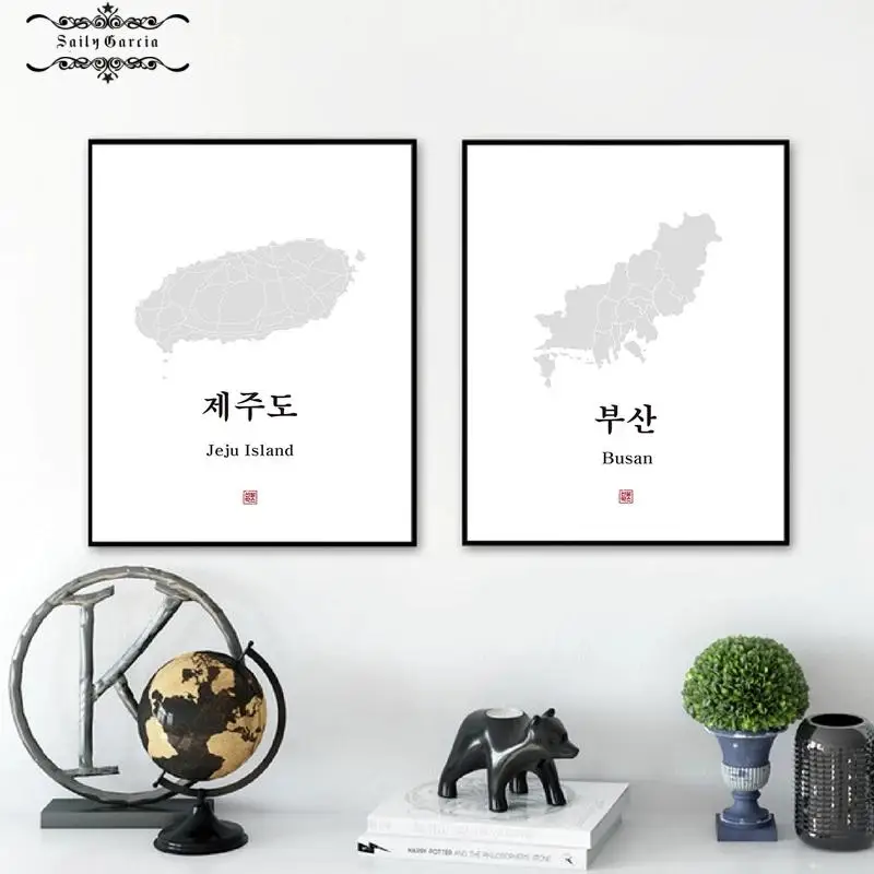 Карта из сеула, Корея, Пусан и остров Чеджу, плакат и печать корейских букв, карта Южной Кореи, Картина на холсте для гостиной, домашний декор