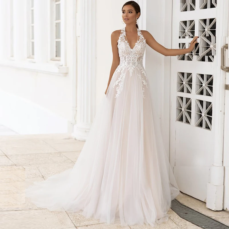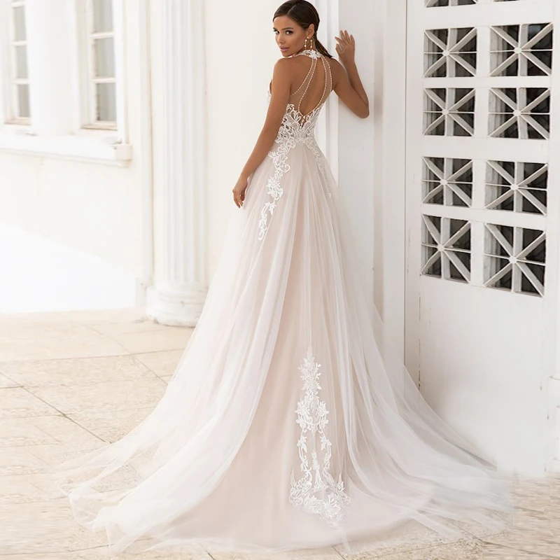 Сексуальный двухсторонний разрез Свадебные платья с лямкой на шее 2...