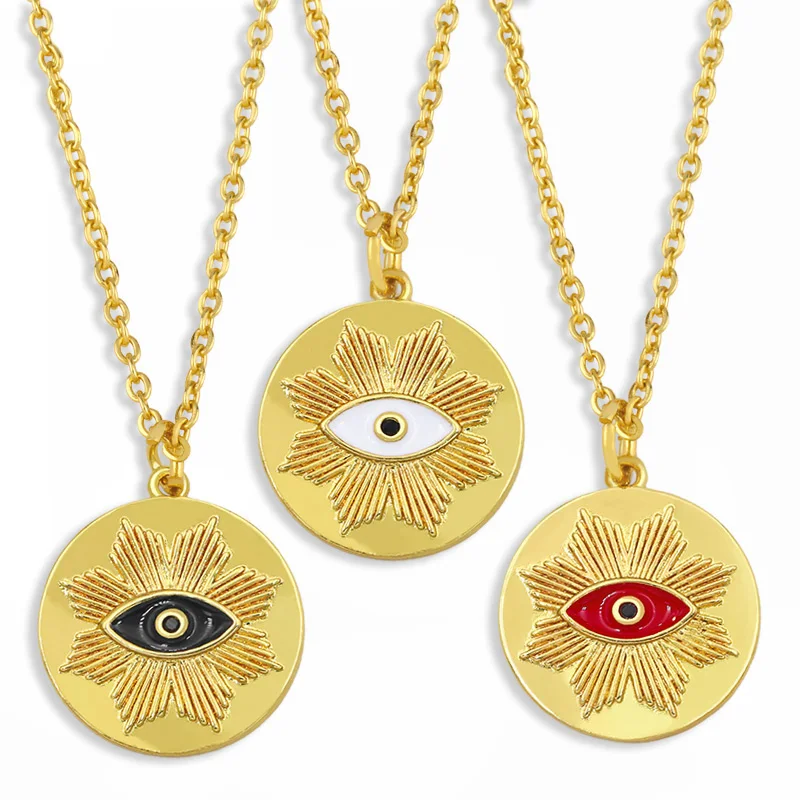 Ожерелье FLOLA с эмалью от сглаза для женщин, Круглый диск, кулон с турецким глазом, позолоченные ювелирные изделия, подарок для женщин, nket44