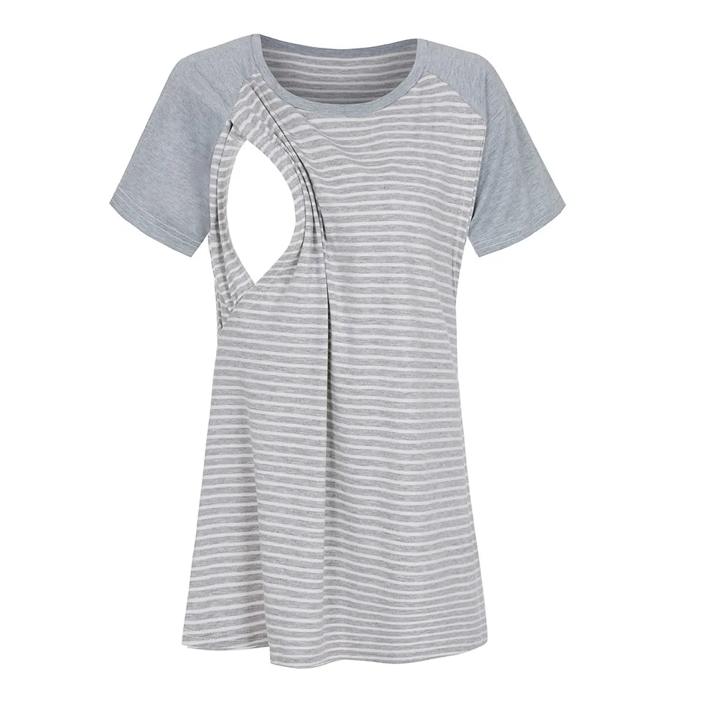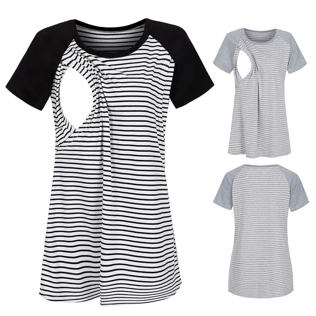 Женская Полосатая футболка с коротким рукавом для кормления грудью
