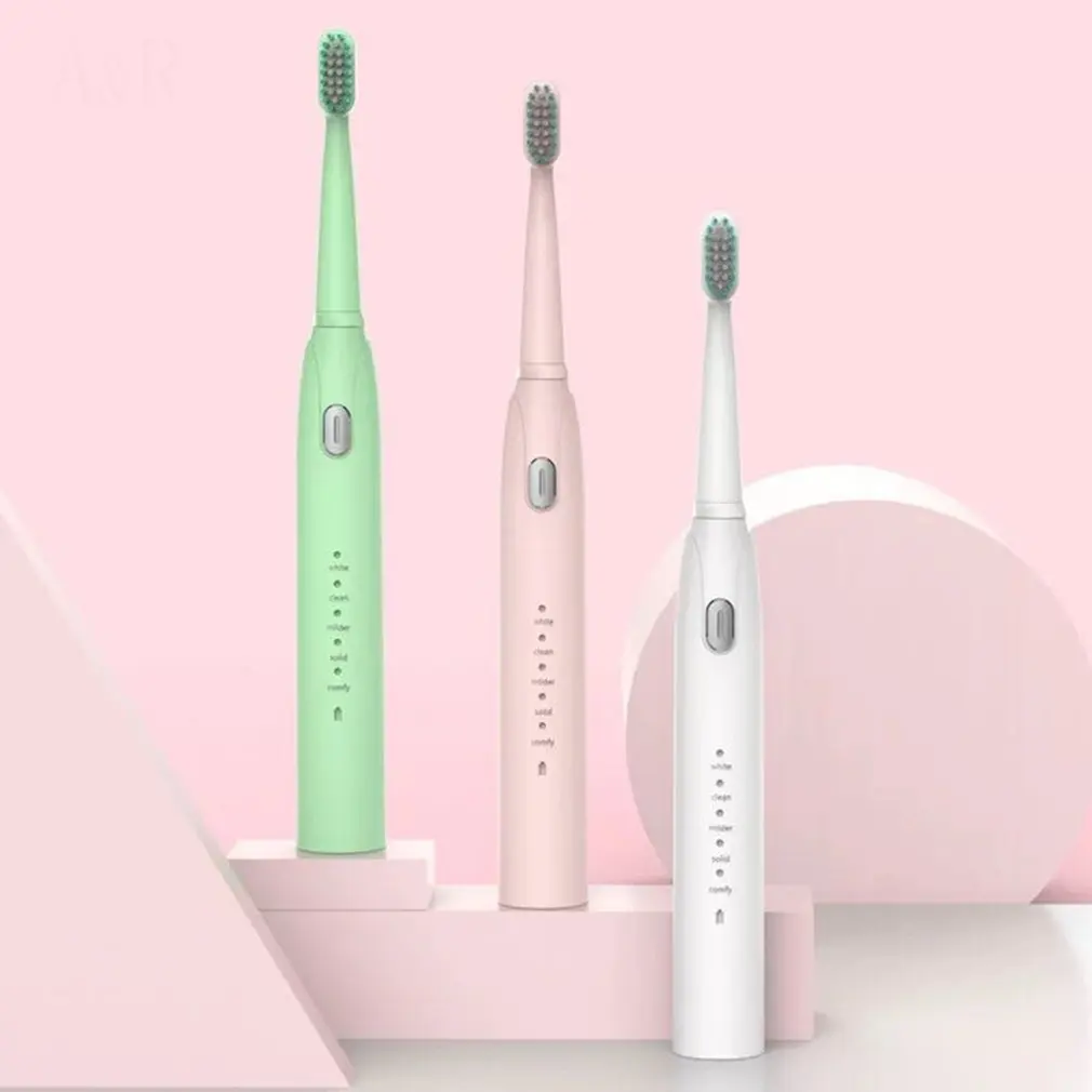 Электрическая зубная щетка с сухой батареей для взрослых, водонепроницаемая автоматическая ультразвуковая зубная щетка с 2 насадками для чистки зубов